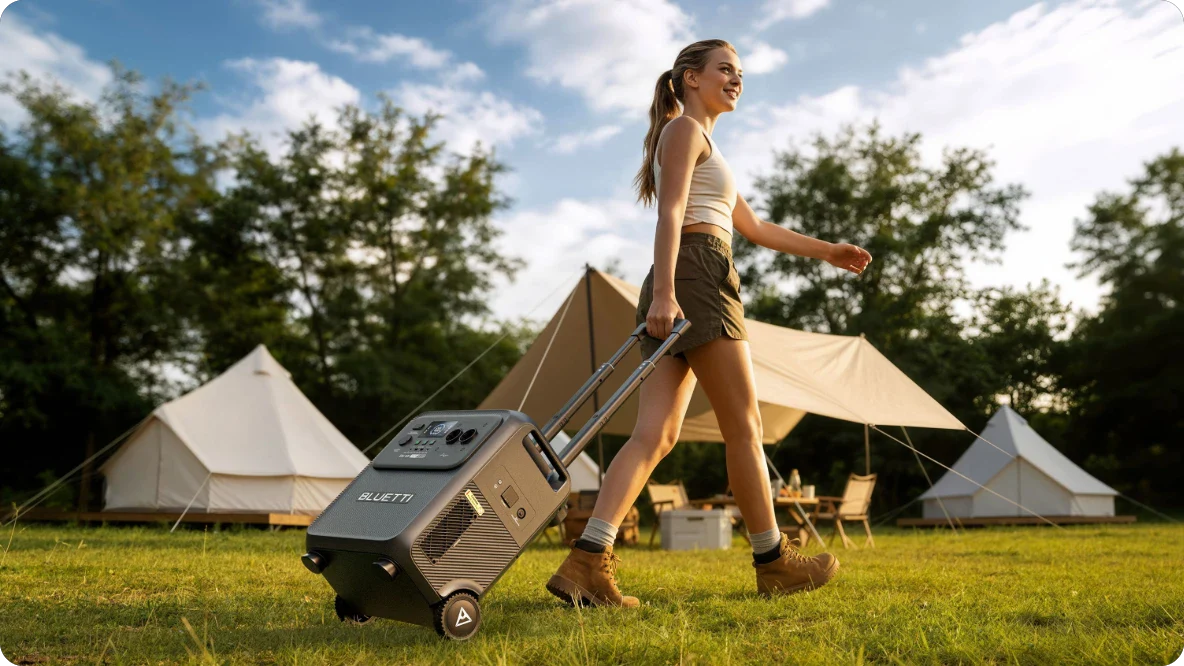 Comme c'est souvent le cas avec les centrales électriques, la capacité élevée se paie au prix du poids. La Bluetti Elite 400 pèse environ 39 kg. Bien que lourd, il reste plus léger que beaucoup d'autres générateurs solaires de 4 kWh sur le marché. Pour faciliter la manutention, l'unité est équipée de deux roues à l'arrière, de deux poignées robustes sur les côtés et d'une poignée télescopique extensible.
