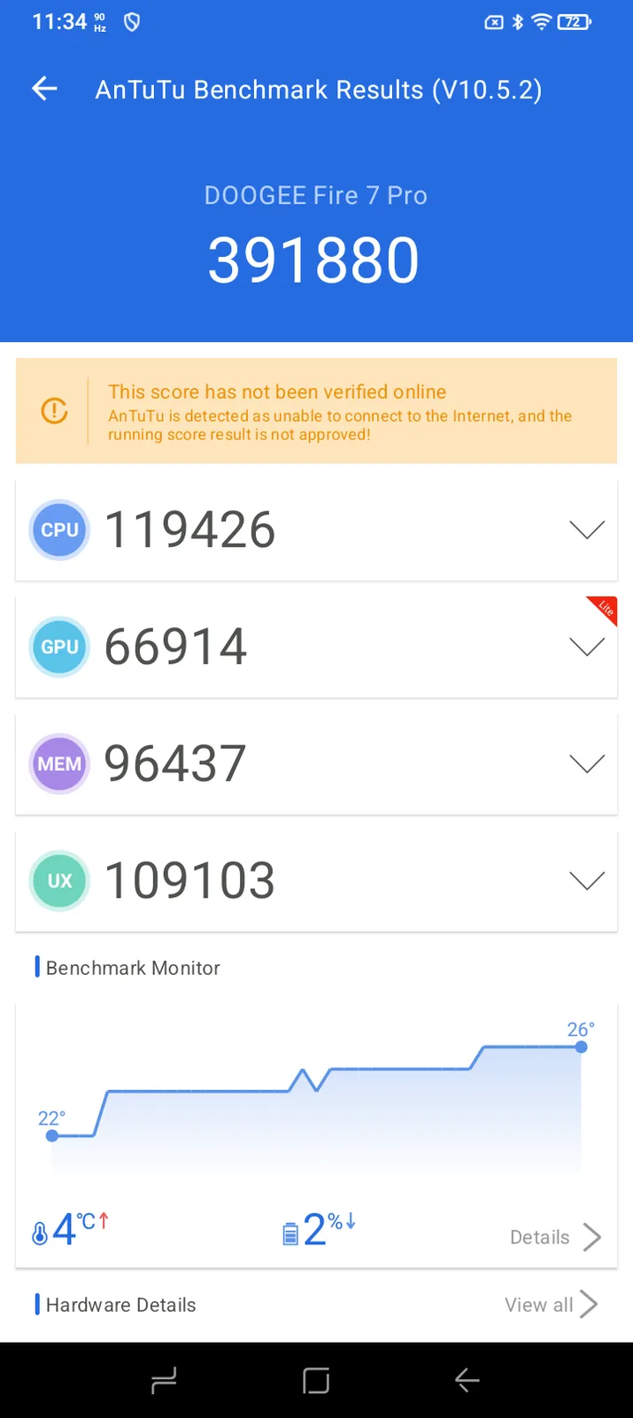 La batterie interne de 13 000 mAh (48,2 Wh) prend en charge une charge filaire de 33 W et une charge inversée de 5 W. L'autonomie annoncée par Doogee est la suivante :