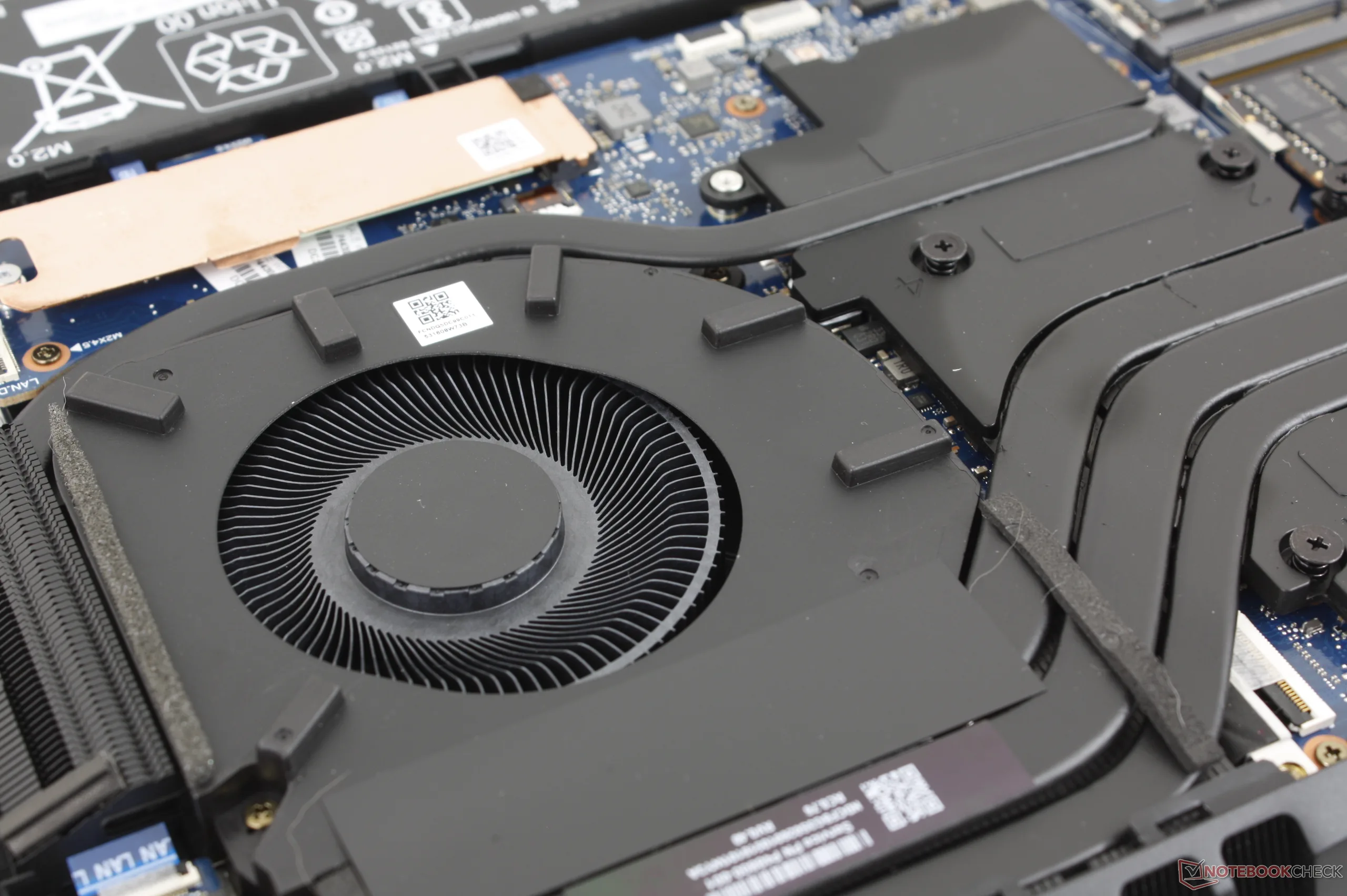 On pourrait s'attendre à ce que le bruit des ventilateurs soit plus fort que d'habitude pour compenser les températures plus basses du cœur, mais cela ne semble pas être le cas non plus. Les ventilateurs plafonnent à environ 50 dB(A) lorsque vous jouez, ce qui est nettement plus silencieux que le Lenovo LOQ 17 Lenovo LOQ 17 ou le MSI Crosshair A17 tous deux équipés du même GPU RTX 5070. Le HP possède des ventilateurs plus grands que le MSI et plus de caloducs que le Lenovo pour une solution de refroidissement plus puissante. Il s'agit toujours d'une machine bruyante, bien sûr, mais au moins, elle est relativement plus silencieuse.
