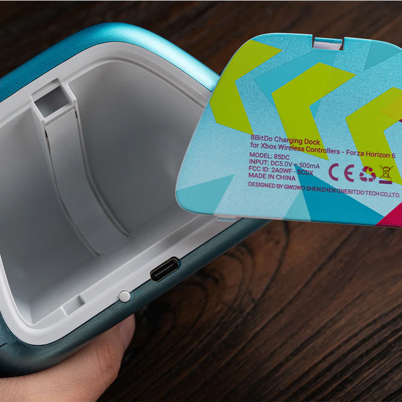 La station d'accueil 8BitDo pour manettes sans fil Xbox - Forza Horizon 6 Limited Edition est le fruit d'une collaboration entre 8BitDo, Xbox et Forza Horizon 6. Conçue pour fonctionner avec les manettes Xbox Series X|S, la station d'accueil est dotée de trois broches pour le chargement, ainsi que de deux aimants pour garantir que votre manette est bien en place. Il dispose également d'un compartiment de rangement pour les batteries de rechange, les portes-batteries et les petits accessoires.