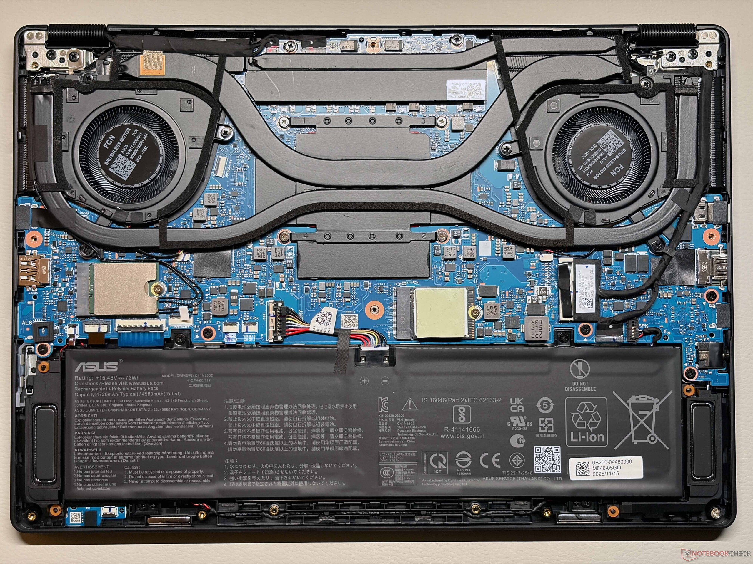 La capacité de la batterie reste inchangée à 73 Wh et les durées d'utilisation enregistrées sont un peu meilleures que celles de l'ancien PX13. À 150 nits, notre test Wi-Fi dure près de 9,5 heures, ce qui est nettement supérieur à la plupart des concurrents. À la luminosité SDR maximale, l'autonomie de 7,5 heures est plus compétitive.