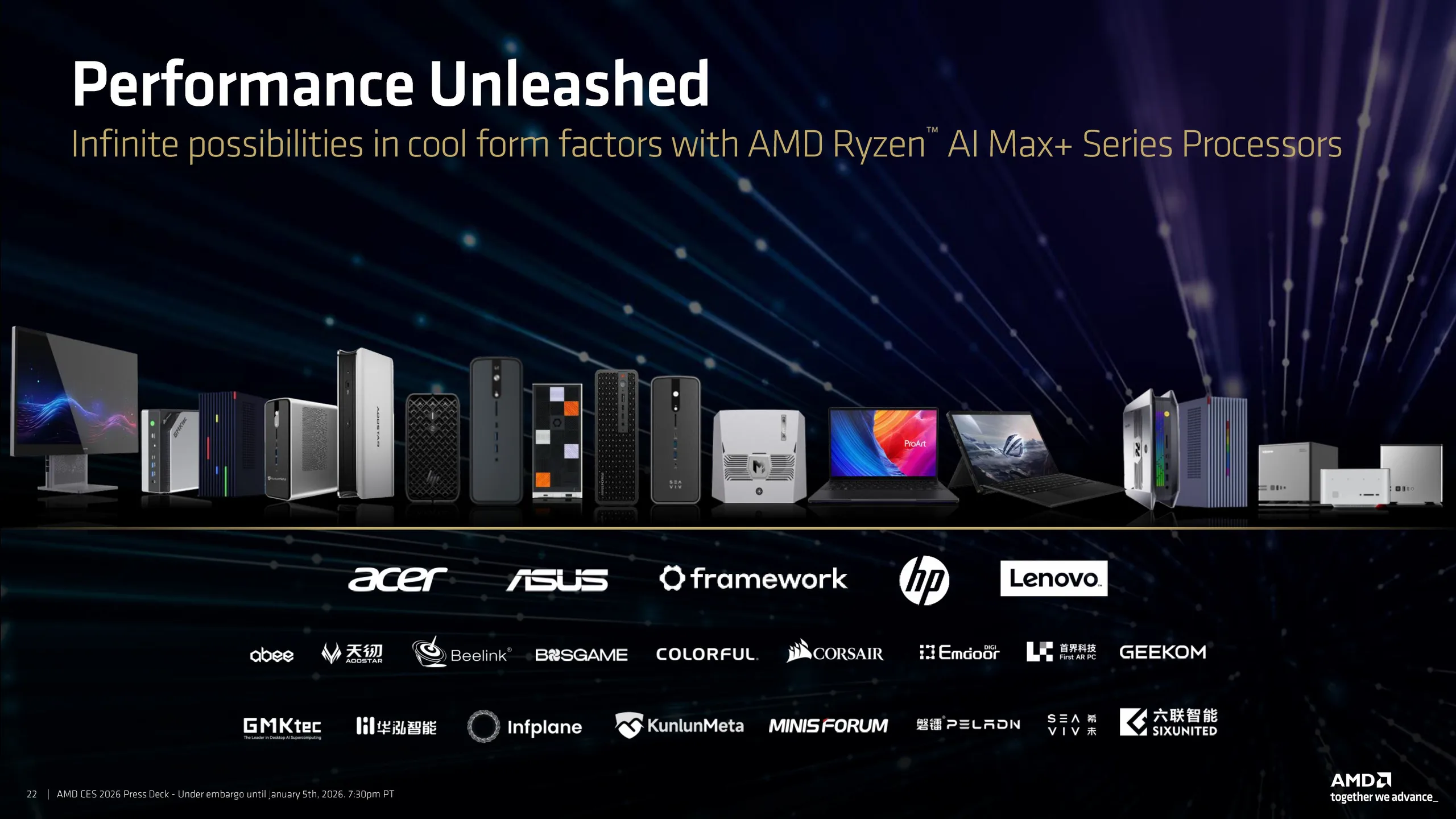 De nouveaux modèles d'ordinateurs portables équipés d'APU Ryzen AI Max+ seront disponibles chez Acer, Asus, Framework, HP et Lenovo. Nous avons également vu des ordinateurs de poche de jeu tels que le GPD Win 5 propulsé par Strix Halo, qui fonctionne à la fois sous Windows 11 et SteamOS.