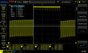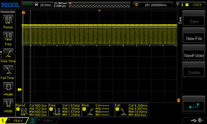 Le rétroéclairage de l'écran scintille à la fréquence de 1300 Hz (certainement du fait de l'utilisation d'une MDI - Modulation de largeur d'impulsion) . La fréquence de rafraîchissement de 1300 Hz est élevée, la grande majorité des utilisateurs ne devrait pas percevoir de scintillements et être sujette à une fatigue oculaire accrue. En comparaison, 53 % des appareils testés n'emploient pas MDI pour assombrir leur écran. Nous avons relevé une moyenne à 8167 (minimum : 5 - maximum : 343500) Hz dans le cas où une MDI était active. | |||