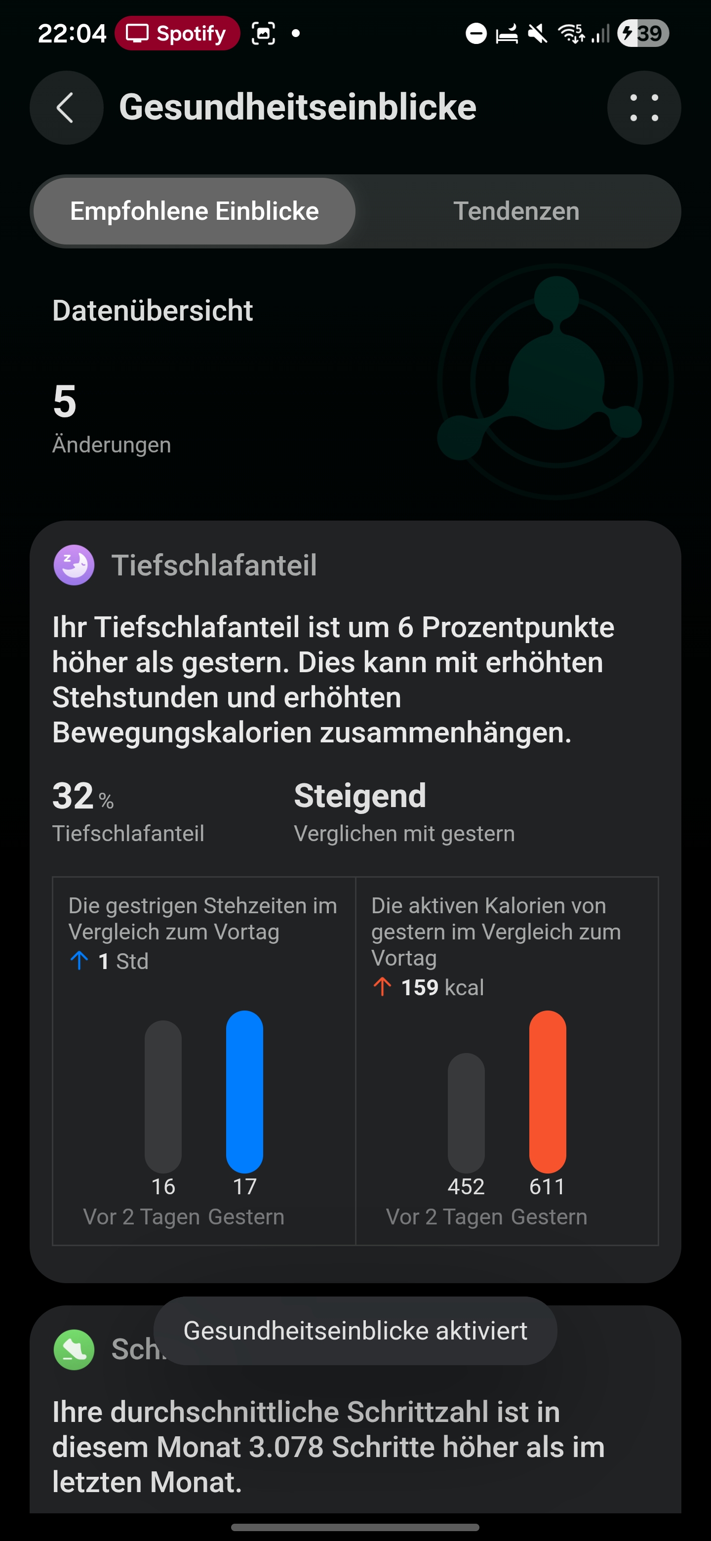 Les tests peuvent être lancés manuellement sur la montre en plaçant un doigt sur le capteur X-Tap, et ils ne prennent qu'une minute environ. Au-delà des relevés individuels, le logiciel fournit également des informations sur la santé, mettant en évidence les changements et les tendances tels qu'une fréquence cardiaque au repos anormalement élevée.