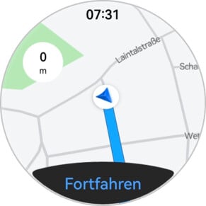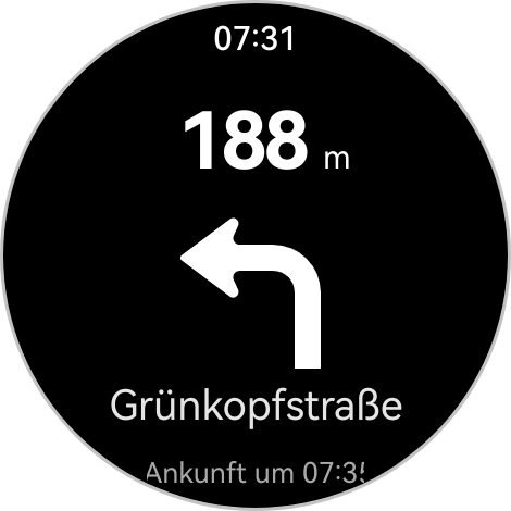 Petal Maps est préinstallé sur la smartwatch, ce qui permet de naviguer sur la montre. L'application compagnon doit également être installée sur le smartphone couplé. Le guidage par flèches et la navigation sur carte sont tous deux disponibles.