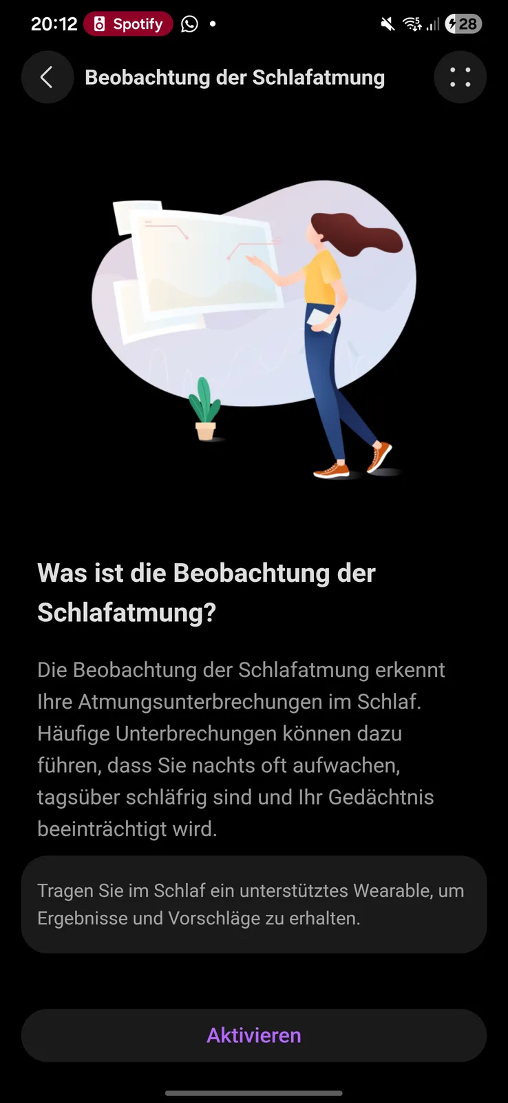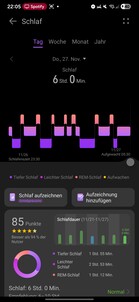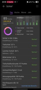 La montre suit également la continuité du sommeil profond, la qualité de la respiration, la fréquence cardiaque, la saturation en oxygène et la fréquence respiratoire. La détection des sons du sommeil nécessite un smartphone couplé à proximité. L'ensemble du sommeil est évalué à l'aide d'un score et d'un système d'étoiles, et le logiciel fournit des analyses et des recommandations pour améliorer la qualité du sommeil.