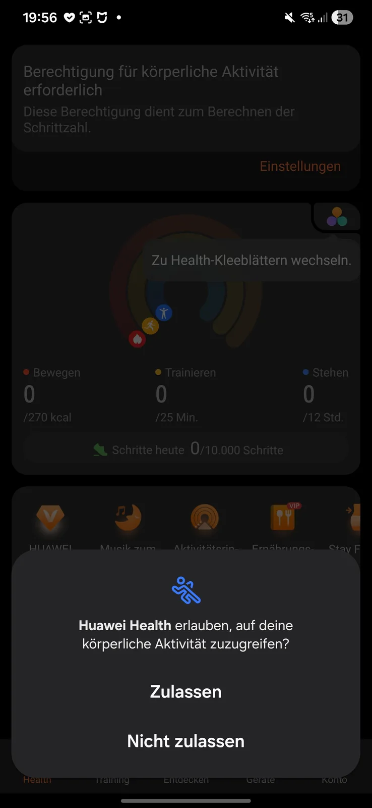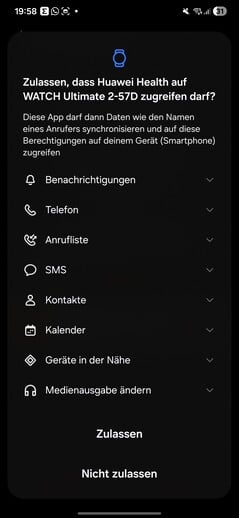 Lors des tests, la smartwatch a été détectée immédiatement et appariée sans problème. Plusieurs autorisations doivent être accordées lors de l'installation. Un identifiant Huawei est également requis. À la fin du processus, un tutoriel est lancé sur la montre. Une chose est frappante : chaque application ouverte sur la smartwatch nécessite une autorisation distincte pour le traitement des données.