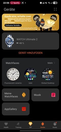 L'application Huawei Health est nécessaire pour configurer et utiliser la Watch Ultimate 2. La dernière version n'est pas encore disponible dans le Google Play Store, mais elle peut être téléchargée à partir d'autres magasins d'applications ou directement via le navigateur.