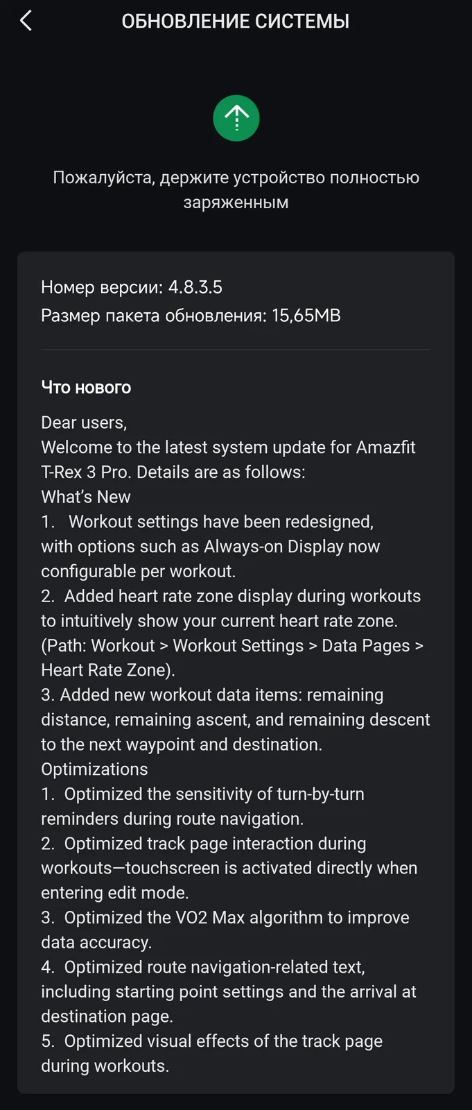 La version 4.8.3.5 du micrologiciel apporte également plusieurs optimisations à la T-Rex 3 Pro. La sensibilité des rappels de virage pour la navigation a été améliorée, tout comme l'expérience de l'utilisateur sur la page de suivi. Amazfit déclare avoir optimisé l'algorithme de calcul de la VO2 Max pour obtenir des informations plus précises. De plus, le texte relatif à la navigation sur l'itinéraire aurait été amélioré.