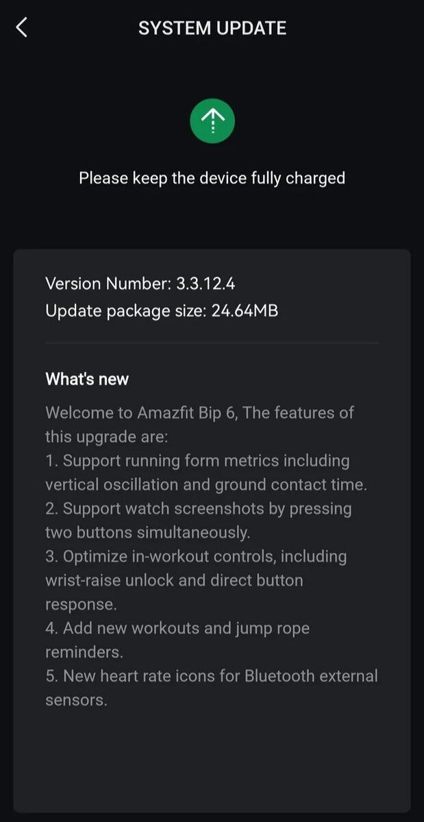 La version 3.3.12.4 du logiciel a été signalée par plusieurs utilisateurs de la smartwatch Amazfit Bip 6 sur Reddit. Grâce à cette mise à jour, la montre bénéficie de nombreuses fonctionnalités qui ont été récemment poussées sur l'Active 2 (Round)(99,99 $ actuellement sur Amazon). Il s'agit notamment de deux nouvelles mesures, l'oscillation verticale et le temps de contact avec le sol, conçues pour vous aider à améliorer votre forme de course. Un nouveau mode sportif ultra-marathon est également lié à la course à pied.