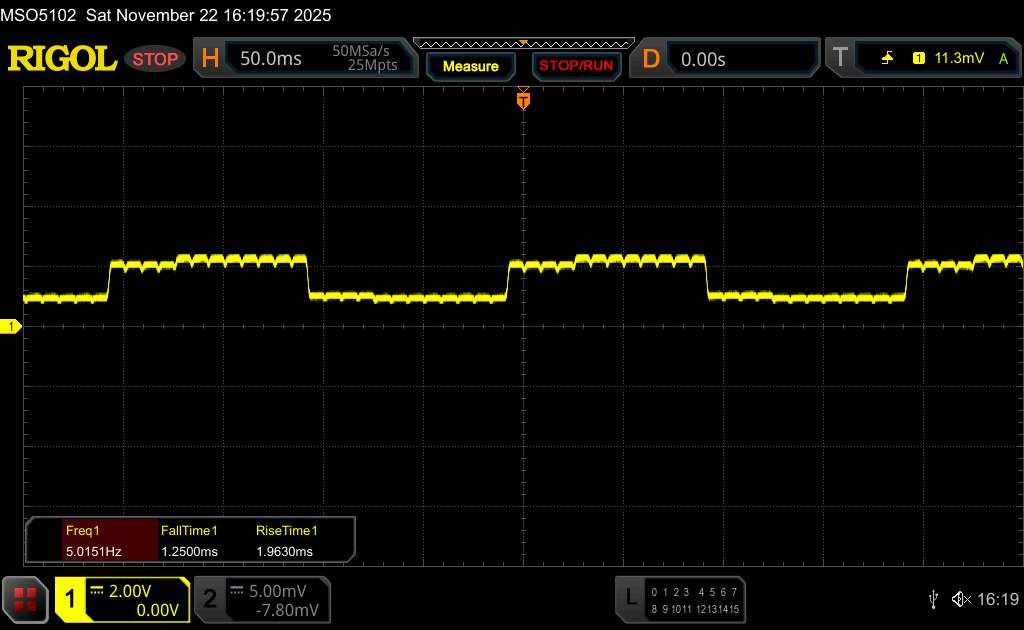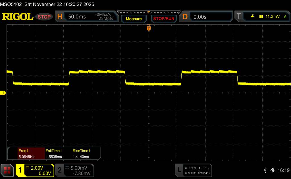 Comme il s'agit d'un panneau OLED, la luminosité est contrôlée par modulation de largeur d'impulsion. Selon le fabricant, l'iQOO 15 utilise une modulation de largeur d'impulsion à haute fréquence à 2 160 Hz pour réduire les effets négatifs potentiels tels que le scintillement visible. Nos mesures effectuées à l'aide du logiciel Rigol indiquent une fréquence de base d'environ 560 Hz.