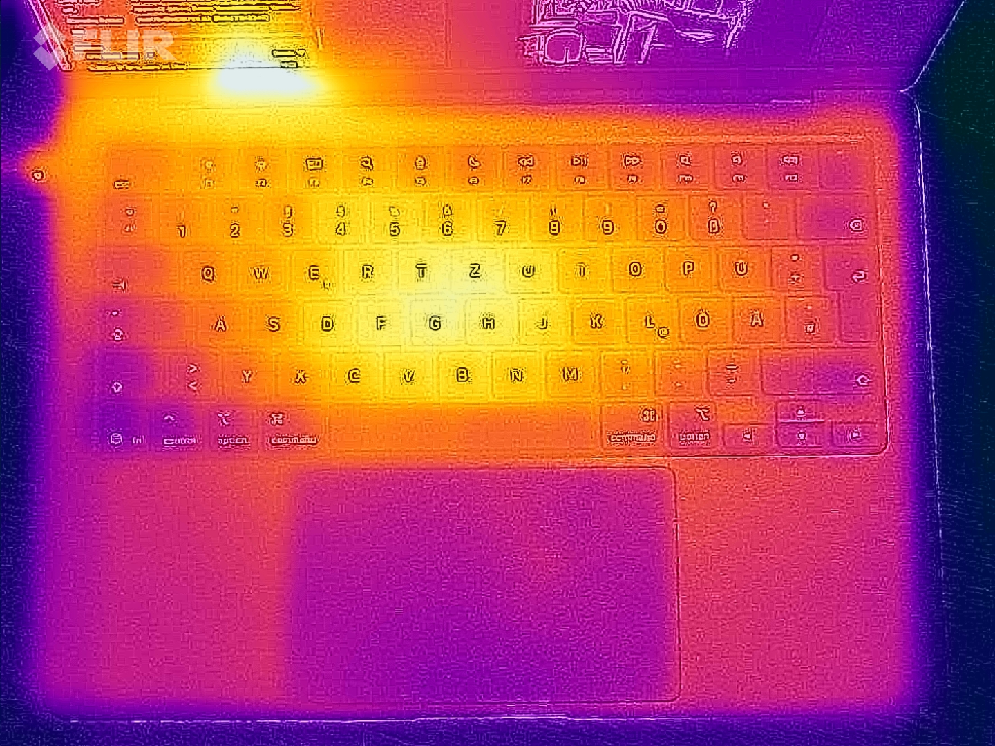 La consommation d'énergie en mode veille a été légèrement réduite par rapport à son prédécesseur, et ~11 watts est une bonne valeur compte tenu de la luminosité élevée de l'ordinateur. Nous n'avons pas eu de surprise non plus en charge. Nous avons testé le MacBook avec l'adaptateur de 70 watts, qui s'est avéré suffisant. Cependant, les acheteurs du nouveau MacBook Pro M5 devraient noter que Apple vend désormais l'appareil sans adaptateur d'alimentation ; seul un câble MagSafe est inclus dans la livraison.
