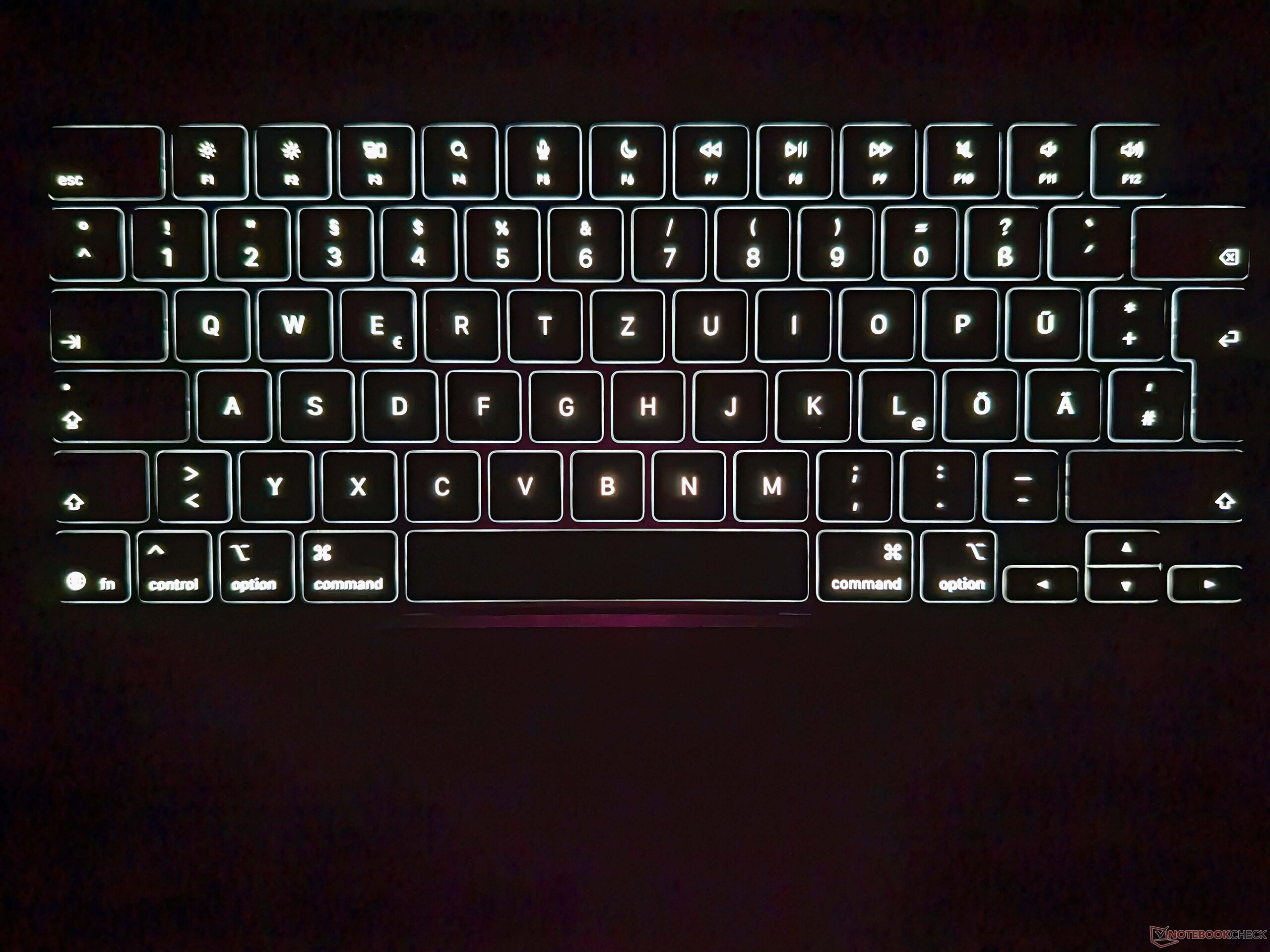 Apple continue de s'appuyer sur le panneau Mini LED qui lui est familier. Les acheteurs peuvent également opter pour une version mate (+ 150 $), que nous avions à notre disposition lors de notre test. La qualité de l'image est légèrement affectée par la surface mate et les couleurs ne sont pas aussi brillantes, mais en contrepartie, vous pouvez travailler dans des environnements lumineux sans avoir à faire face à des reflets gênants. Le mini rétroéclairage LED scintille constamment à une fréquence très élevée de moins de 15 kHz, ce qui ne devrait pas poser de problème aux utilisateurs sensibles. Malheureusement, en raison de ce scintillement, nous n'avons pas pu déterminer avec précision les temps de réponse de l'écran, de sorte que nos résultats de mesure n'ont qu'une signification limitée. Grâce à son taux de rafraîchissement de 120 Hz, l'écran ne présente aucun problème d'image fantôme visible.