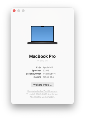 | Apple MacBook Pro 14 2025 M5 Apple M5 (10 Cores) ⎘ Apple M5 GPU ⎘ 32 Go Mémoire, 1024 Go SSD | Amazon: 1. $1,999.00 Apple 2025 MacBook Pro Lapto... 2. $2,189.13 Apple 2024 MacBook Pro Lapto... 3. $19.96 BlueSwan Anti-Cracking Hard ... Prix de liste: 2739€ | 1.5 kg | 15.5 mm | 14.20" 3024x1964 254 PPI Mini-LED | |