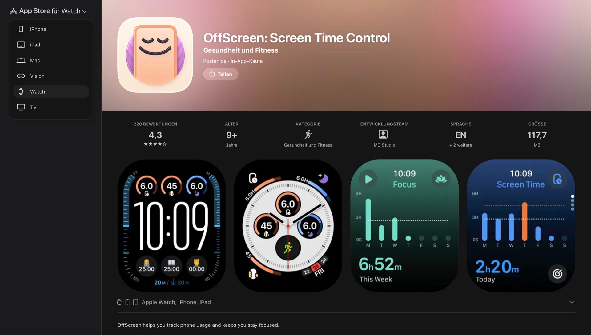 Un bouton situé dans le coin supérieur gauche de l'écran vous permet de basculer rapidement entre toutes les plateformes Apple, ce qui est pratique pour parcourir les logiciels disponibles pour la Apple Watch, Apple TV 4K ou Apple Vision Pro avant d'acheter le produit correspondant