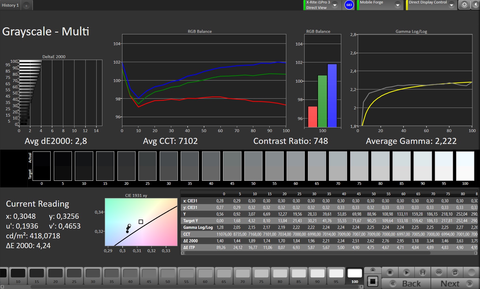 Homogénéité de la luminosité: 98 %