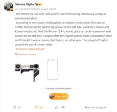 Cela n'arrive pas souvent, mais dans ce cas-ci, les fuites concernant l'iPhone 18 Pro étaient apparemment basées sur une erreur de traduction plus ou moins simple. Ces fuites ont donné lieu à un grand nombre d'images de rendu et même à une vidéo d'un important auteur de fuites illustrant ce à quoi pourrait ressembler la face avant de l'iPhone 18 Pro et de l'iPhone 18 Pro Max. Ces images imaginaient un trou de perforation sur le côté supérieur gauche au lieu d'un large Dynamic Island au centre de l'écran.