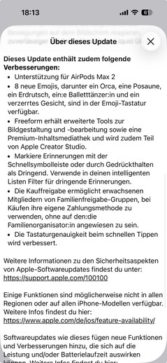 L'application Musique est dotée d'arrière-plans plein écran pour les albums et les listes de lecture, ainsi que d'une fonction "Concerts" qui permet d'afficher les concerts de vos artistes préférés à proximité. De nouvelles options d'accessibilité vous permettent de réduire les animations Liquid Glass et les éléments lumineux sur l'écran. Apple prend également en charge les nouveaux écouteurs AirPods Max 2 et huit nouveaux emoji. Apple l'application Freeform de Apple est dotée d'un contenu premium qui nécessite l'abonnement à Creator Studio. Particulièrement intéressant pour de nombreux utilisateurs : la mise à jour corrige un bogue bien connu qui faisait que le clavier ne reconnaissait pas correctement les saisies lorsque la vitesse de frappe était particulièrement élevée