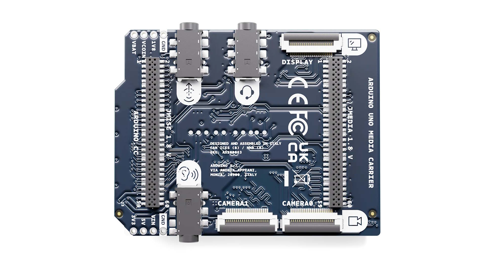 Il existe également des connexions audio pour les casques ou les écouteurs, ainsi qu'une sortie de ligne pour connecter des haut-parleurs. Il s'agit d'une prise audio combinée de 3,5 mm qui fournit à la fois une sortie casque et une entrée microphone. En outre, il y a un connecteur pour chaque haut-parleur et chaque casque. Arduino propose déjà le UNO Media Carrier au prix de 19,25 euroset son lancement est prévu prochainement. Cependant, Arduino n'a pas encore fourni de détails sur sa disponibilité.