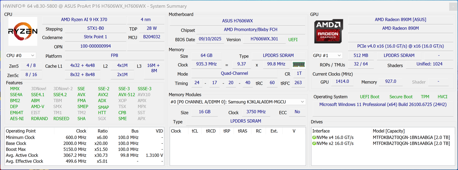 | Asus ProArt P16 H7606WP AMD Ryzen AI 9 HX 370 ⎘ Nvidia GeForce RTX 5070 Laptop ⎘ 64 Go Mémoire, 2048 Go SSD | Amazon: 1. $3,389.00 HIDevolution [2025] ASUS Pro... 2. $2,929.99 ASUS ProArt P16 AI Creator L... 3. $2,349.00 ASUS ProArt P16 AI Creator L... Prix de liste: 3399€ | 1.8 kg | 17.3 mm | 16.00" 2880x1800 212 PPI OLED |