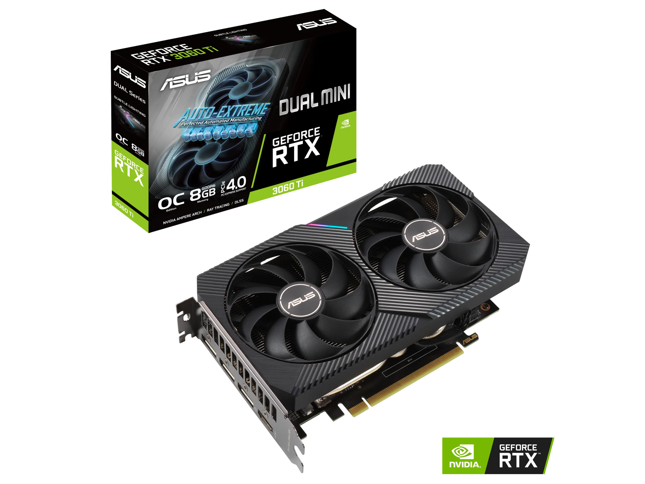 Le nouveau Dual GeForce RTX 3060 Ti Mini est également équipé des sorties vidéo standard triple DisplayPort 1.4 + HDMI 2.1 et, malgré un connecteur d'alimentation plus petit, le cœur peut toujours être overclocké à au moins 1710 MHz. La disponibilité et le prix réels de cette carte sont encore inconnus. Les données historiques sur les prix suggèrent que le prix des cartes mini-ITX est généralement légèrement supérieur à celui des cartes ordinaires, ce qui nous laisse espérer un prix de vente moyen d'environ 450 dollars. Toutefois, la pénurie actuelle pourrait faire passer les prix réels au-dessus de 500 dollars.