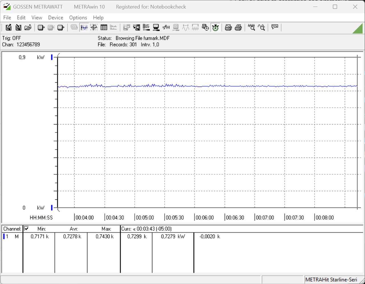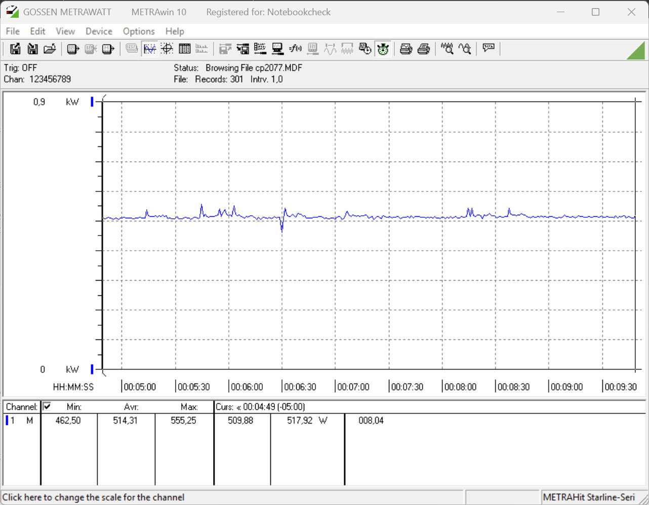Nous avons mesuré la consommation d'énergie en combinaison avec l'Aorus Master 18 AM8H. Lors du test de stress avec FurMark, nous avons enregistré 728 watts au niveau du socket, alors que l'Aorus RTX 5090 AI Box seule peut consommer jusqu'à 575 watts. En mode jeu, la consommation d'énergie fluctue en fonction du jeu et des paramètres sélectionnés. Néanmoins, vous pouvez vous attendre à une consommation totale d'environ 450 à 550 watts.