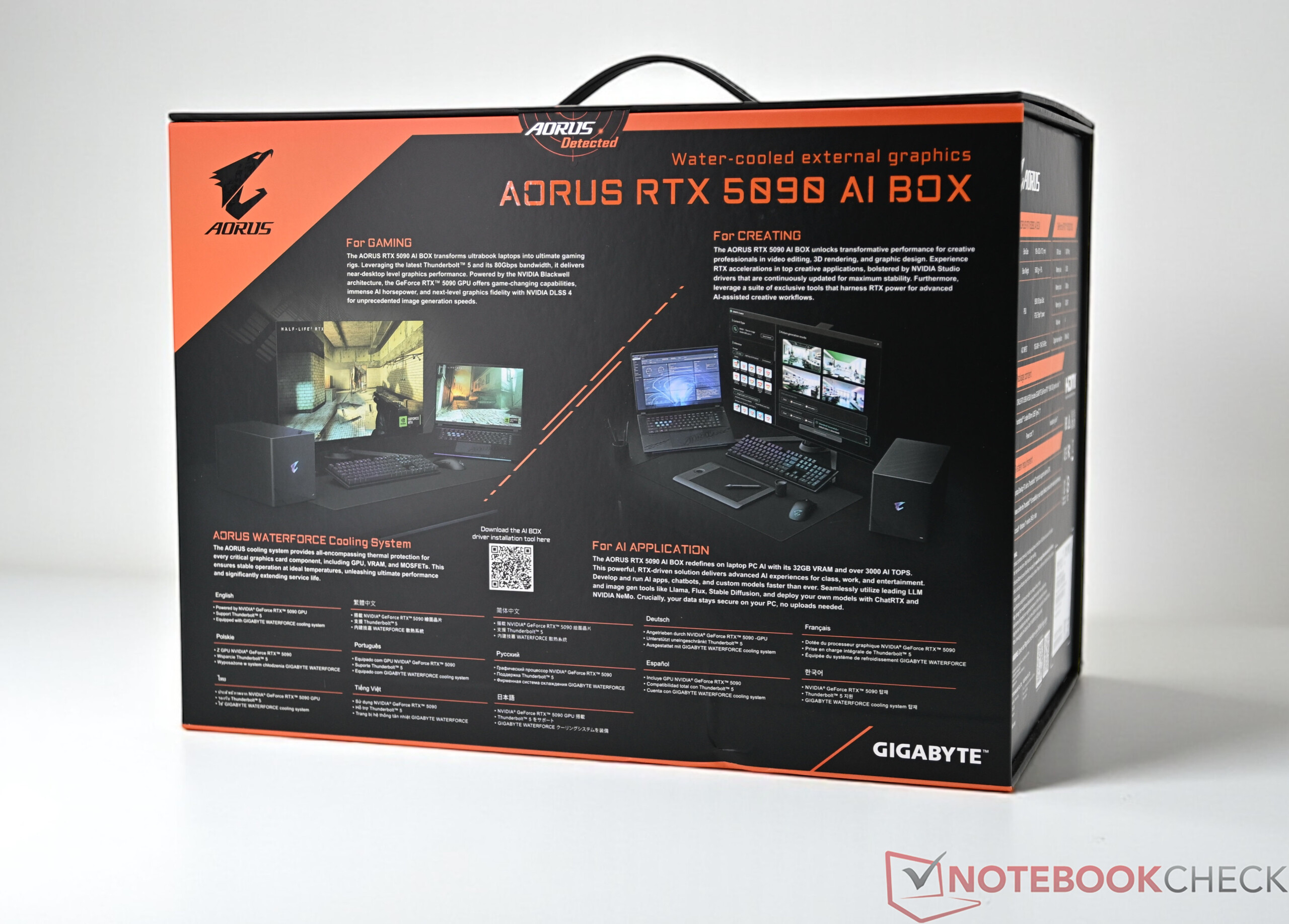 L'Aorus RTX 5090 AI Box est une solution GPU externe de Gigabyte basée sur le GPU de bureau grand public le plus rapide de Nvidia. GeForce Avec l'Aorus RTX 5090, les performances graphiques des ordinateurs portables peuvent être élevées à un autre niveau. Elle s'adresse aux utilisateurs qui souhaitent utiliser des charges de travail d'IA, des projets créatifs ou des jeux exigeants de manière flexible sans avoir à recourir à un grand PC de bureau. Grâce à la dernière interface Thunderbolt 5, l'AORUS RTX 5090 AI Box peut être facilement connectée à des ordinateurs portables ou à des systèmes compacts. Les anciennes versions Thunderbolt sont également prises en charge, bien qu'il puisse y avoir une réduction notable des performances.