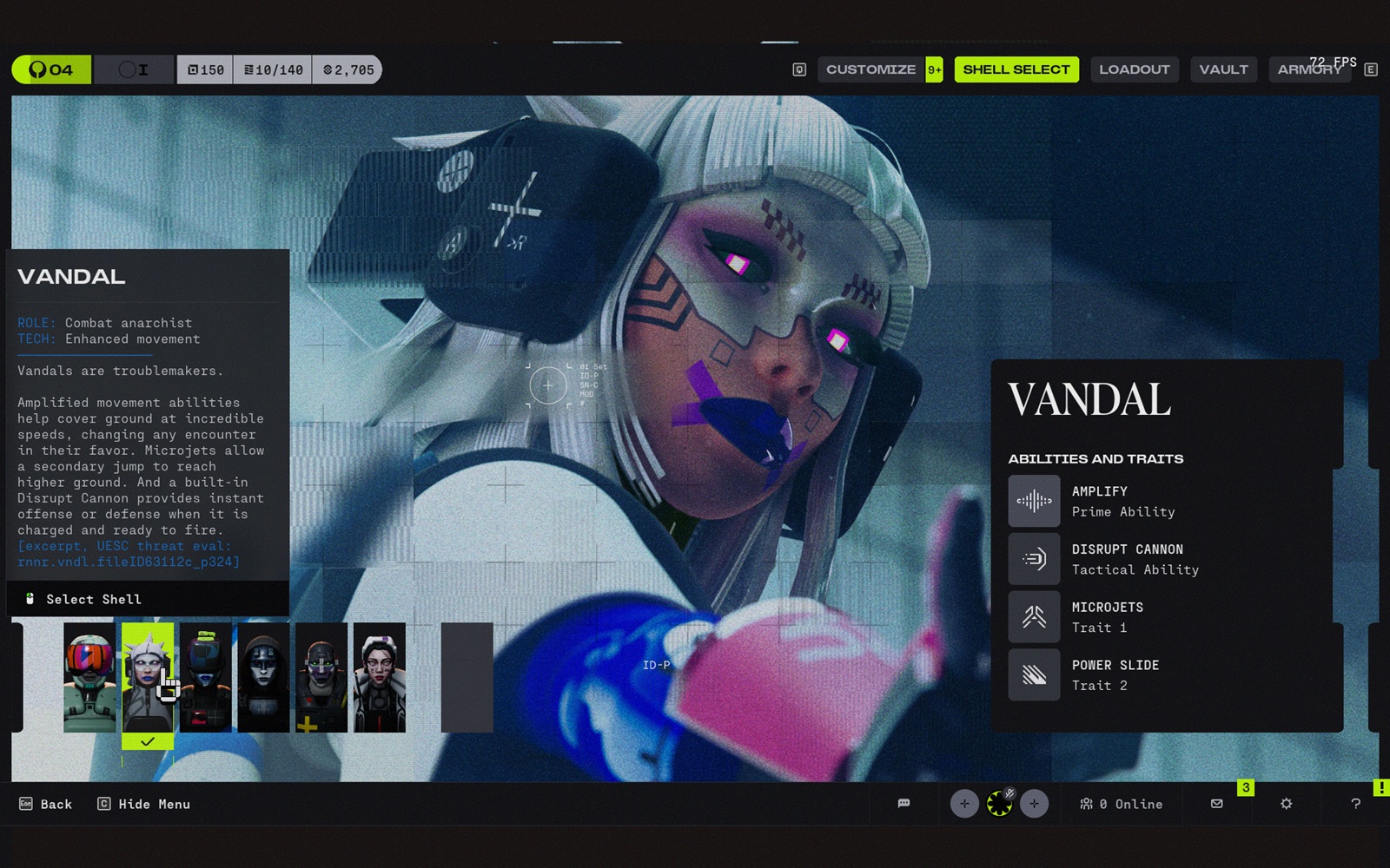 L'un des premiers signes les plus évidents est que Marathon traite ses coquilles comme de véritables archétypes de jeu plutôt que comme des emballages cosmétiques. La liste des coquilles comprend le Voleur, le Destructeur, le Vandale, l'Assassin, la Reconnaissance et le Triage, chaque coquille étant construite autour de ses propres capacités et traits de caractère. En pratique, cela donne au jeu une structure de classe immédiate centrée sur la furtivité, la perturbation, le soutien, le repérage, la mobilité et l'agression directe.