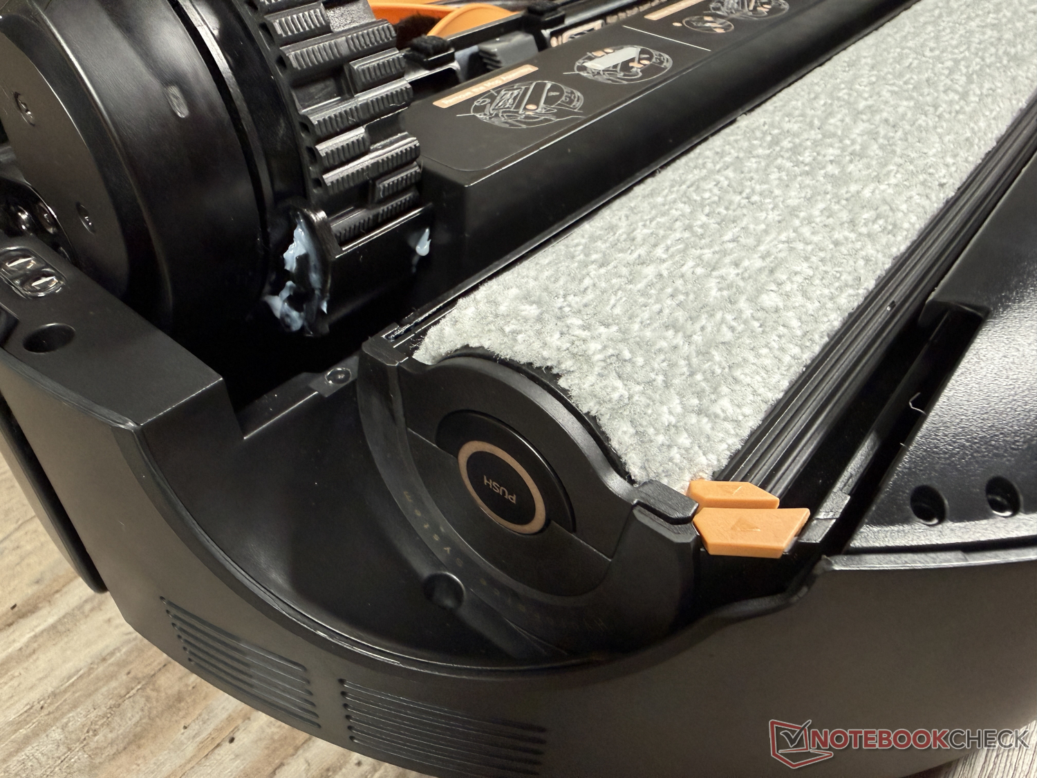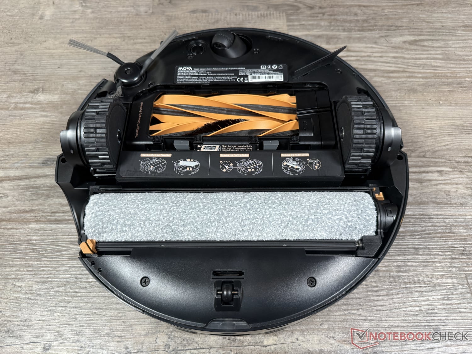 Ce qui est également identique, c'est que les deux aspirateurs robots utilisent un large rouleau pour passer la serpillière. Cette technologie, appelée Mova HydroForce mopping, permet de rincer en permanence la serpillière, préalablement débarrassée de l'eau sale, par des jets d'eau fraîche provenant de douze buses. Avec 4 100 Pa, la pression de contact est légèrement inférieure à celle de Dreame. Cependant, le bouclier de protection qui recouvre le rouleau de la serpillière lors du nettoyage des moquettes est également présent.