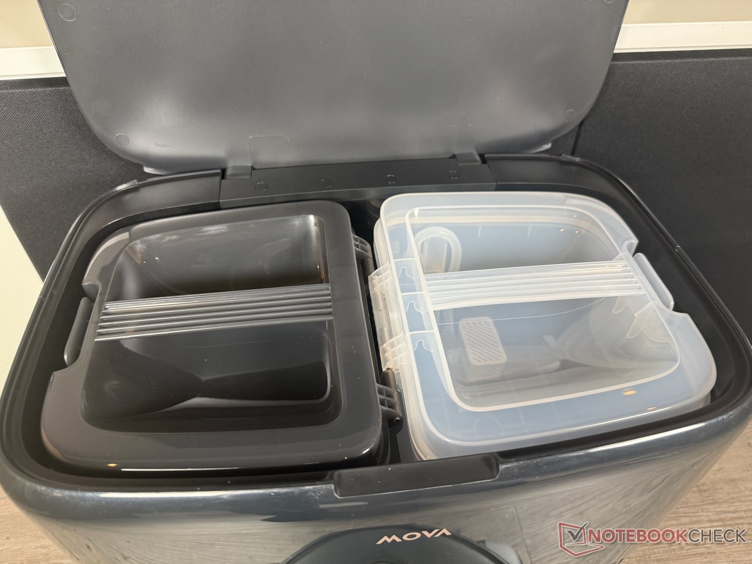 Bien entendu, la station de base au design familier de Mova est également incluse. Elle ne se contente pas de nettoyer le bac à poussière dans un sac de 3,2 litres. Elle se charge également de nettoyer la fonction de balayage. Mova utilise de l'eau à une température légèrement inférieure à celle de Dreame (80°C). Toutefois, cela n'a pas vraiment affecté la propreté visuelle du rouleau à laver lors du test. Il est ensuite séché à l'air chaud. En outre, la stérilisation par UV peut être activée via l'appli et deux produits de nettoyage peuvent être dosés automatiquement.