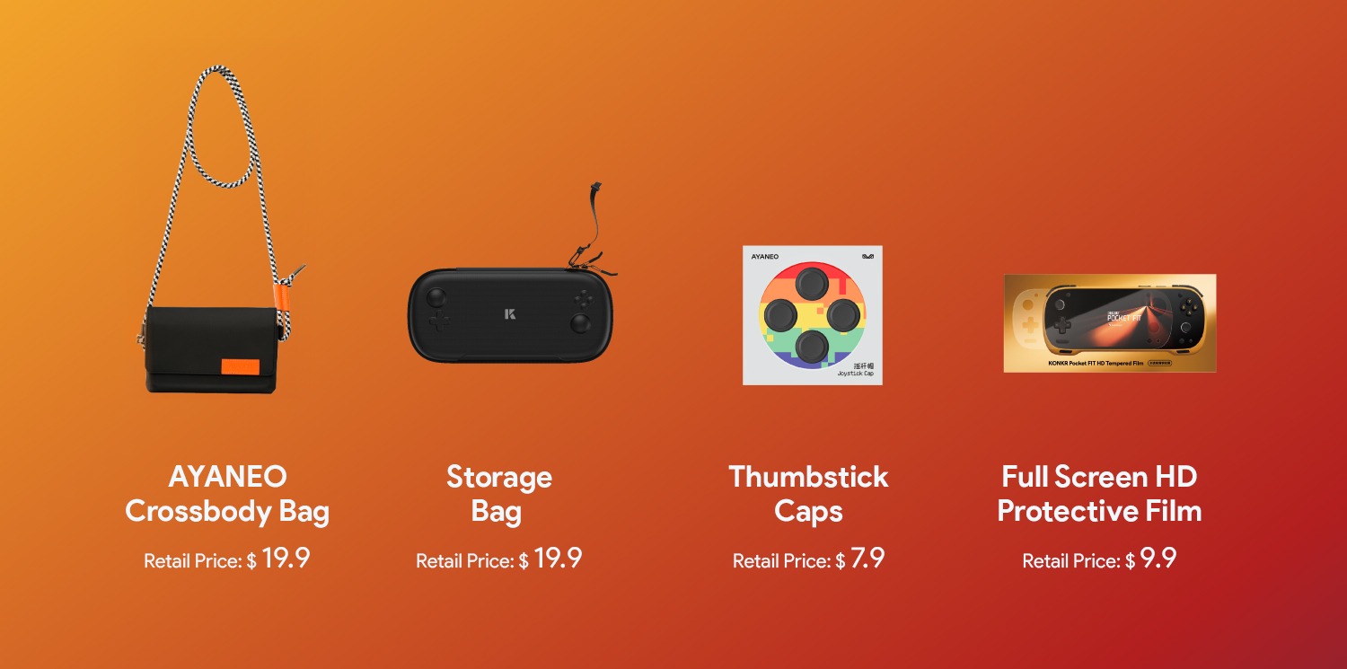 Le coupon de 15 $ s'applique aux précommandes du Snapdragon G3 Gen 3 et du Snapdragon 8 Elite du Konkr Pocket, ceux qui ont soutenu la version Pocket Fit Elite (version Snapdragon 8 Elite), recevront un pack cadeau en plus du coupon. Ce pack comprend un sac de rangement Pocket Fit d'une valeur de 19,99 $, des capuchons de pouce d'une valeur de 7,99 $, un sac transversal Ayaneo d'une valeur de 19,99 $ et un film protecteur HD plein écran d'une valeur de 9,99 $.