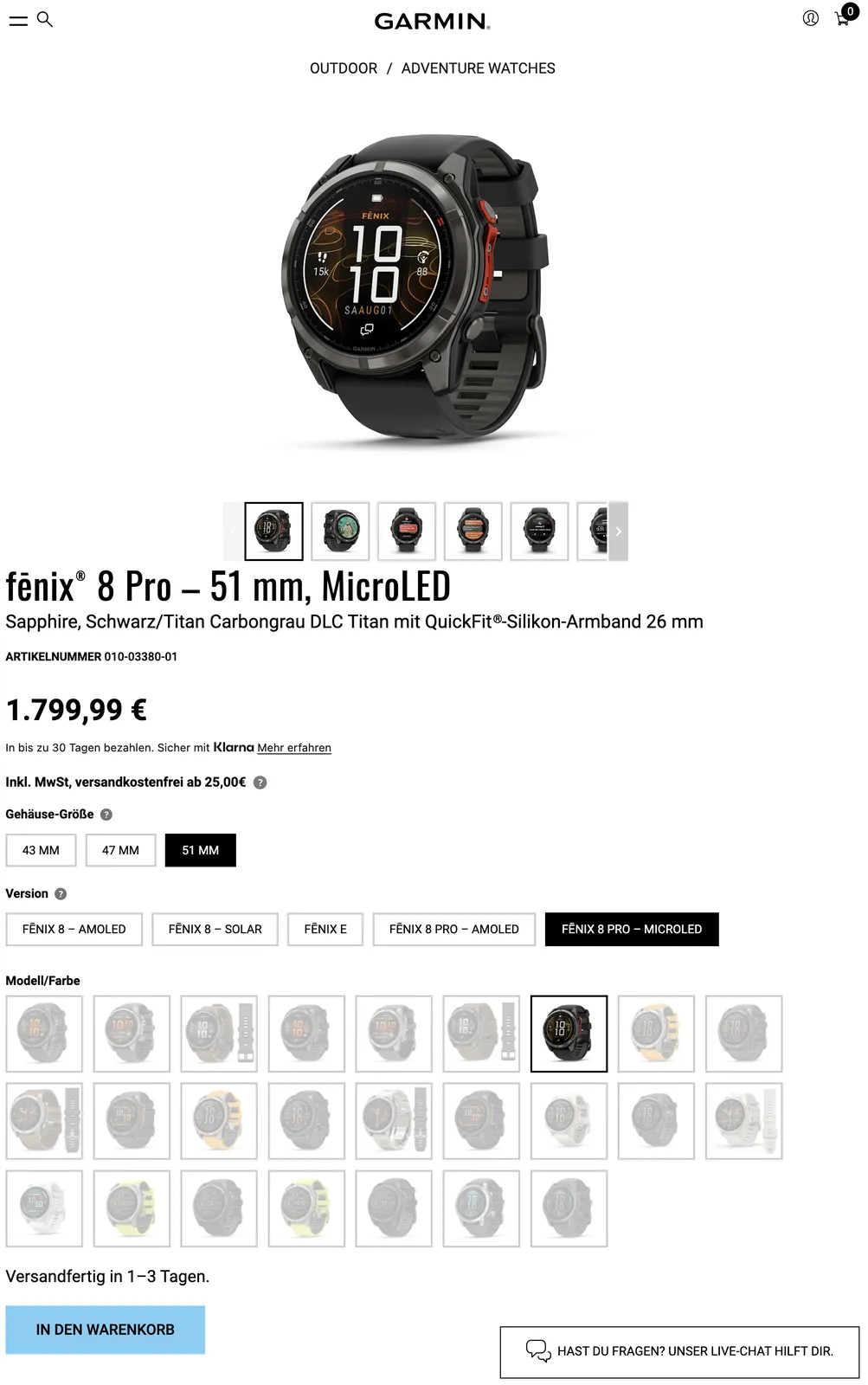 Parallèlement, un écart de 300 livres sterling existe désormais entre les variantes du Fenix 8 Pro au Royaume-Uni, la variante MicroLED étant passée à 1 499,99 livres sterling. Il semblerait que ces changements de prix soient permanents, étant donné que Garmin ne mentionne pas que l'une ou l'autre de ces versions est en promotion. Veuillez noter que Garmin ne propose la Fenix 8 Pro MicroLED qu'en version smartwatch 51 mm. Vous trouverez plus de détails sur la Fenix 8 Pro et son écran optionnel de 4 500 nits dans notre article de lancement.