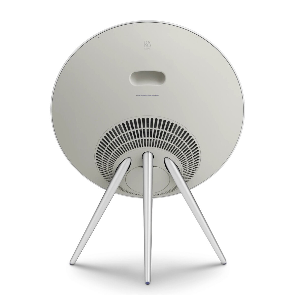 Le Beosound A9 en "Century Blue" combine un boîtier en aluminium argenté avec des pieds en métal et un revêtement en tissu bleu foncé de Kvadrat. L'enceinte ronde, d'un diamètre de 70 centimètres, abrite sept haut-parleurs, dont un woofer de 200 millimètres, ainsi que des amplificateurs d'une puissance totale de 1 500 watts. Le son peut être ajusté automatiquement en fonction de la pièce