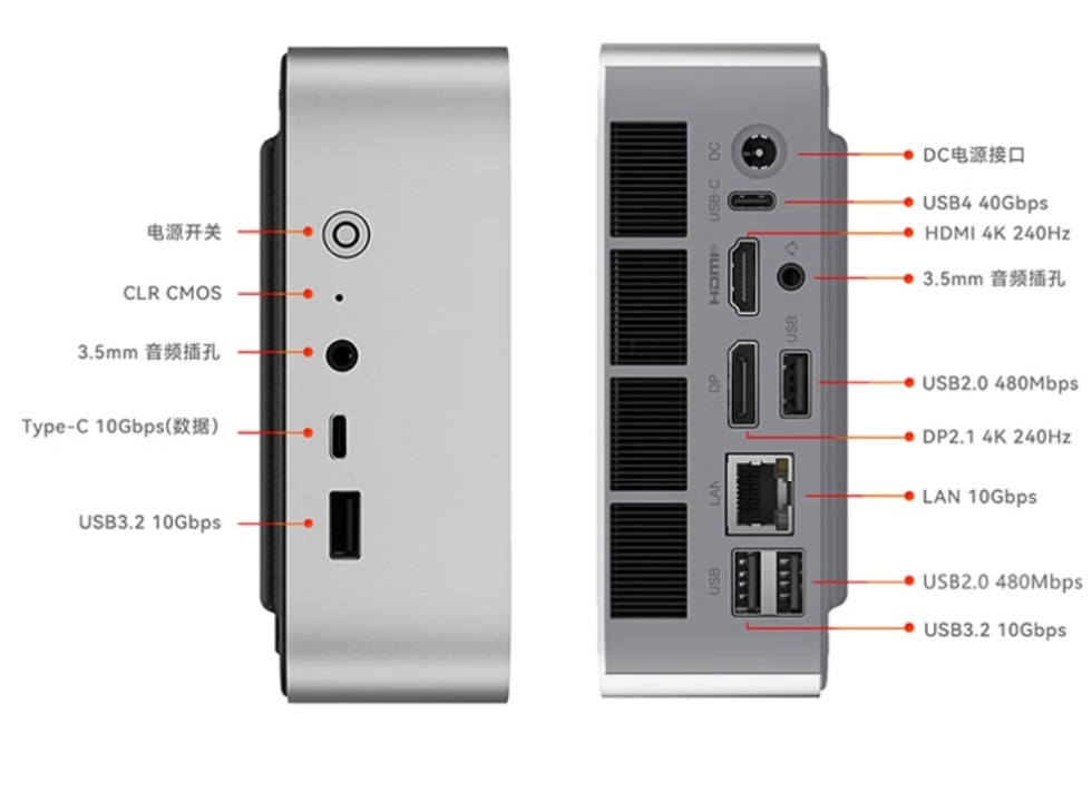 En outre, le SER9 Max prend en charge le stockage extensible via des emplacements M.2 2280 (PCIe 4.0 x4), ainsi qu'une multitude de ports répartis sur les panneaux avant et arrière. Beelink indique que le SER9 Max dispose d'une mémoire vive LPDDR5x 6 400 MT/s dans certains cas et d'une mémoire vive DDR5 5 600 MT/s plus lente dans d'autres cas, ce qui peut prêter à confusion. Quoi qu'il en soit, le SER9 Max est équipé d'un LAN 10 Gbps, d'un DisplayPort 2.1 et d'un port USB4 40 Gbps, le tout dans un boîtier qui mesure 135 x 135 x 44,7 mm et pèse 780 g.