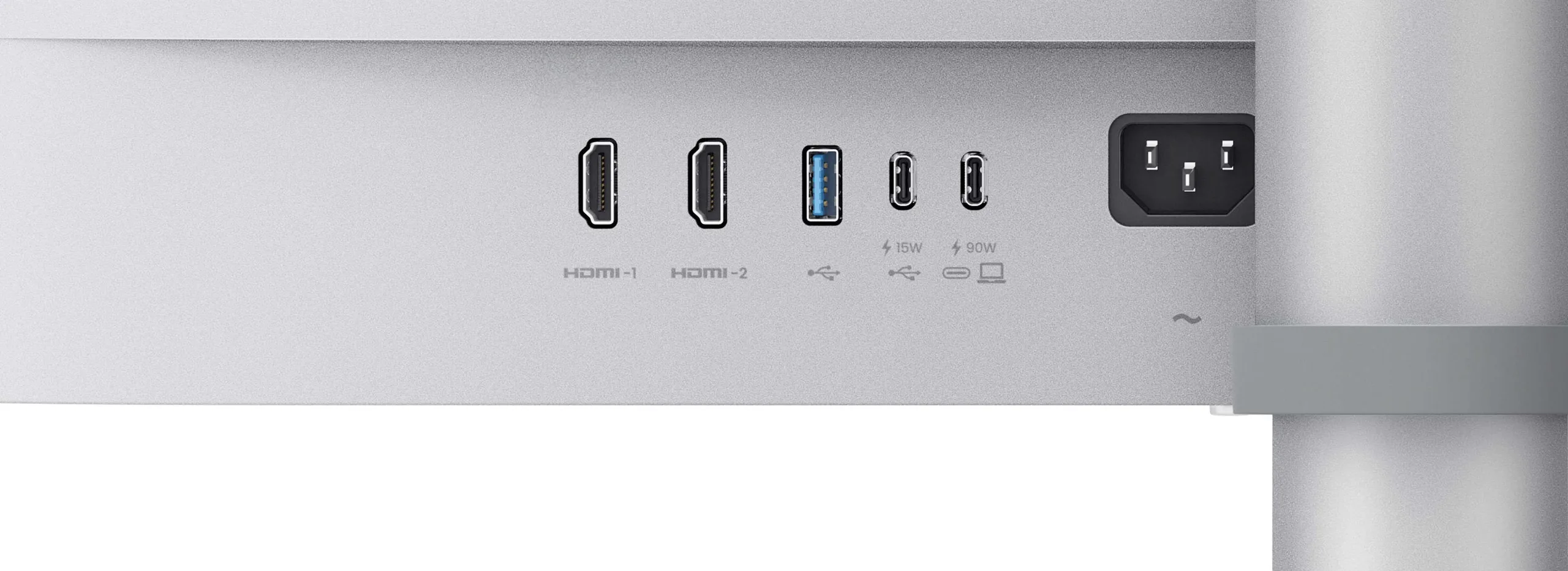 Des fonctions ergonomiques sont disponibles, notamment le réglage en hauteur, le réglage de l'inclinaison et la rotation de 90 degrés pour le mode portrait (pivot). Un port USB-C est embarqué, permettant d'alimenter les appareils compatibles via USB PD avec une puissance maximale de 90 watts. Des connexions HDMI et DisplayPort sont également disponibles, ainsi que des ports USB supplémentaires pour connecter des périphériques tels qu'une souris et un clavier
