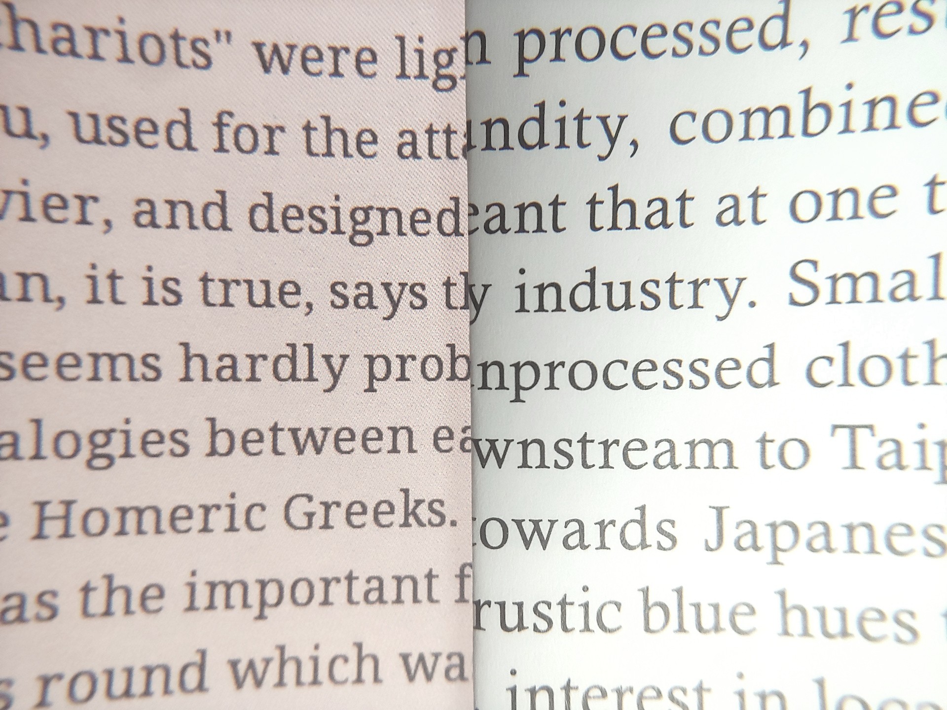 Les pixels étaient visibles à un grossissement de 8x. Les bords du texte de l'écran OLED étaient légèrement plus nets, mais aucun ne correspondait à l'impression d'un magazine, et les bords devenaient plus rugueux lorsque l'on passait du mode Regal au mode Speed.