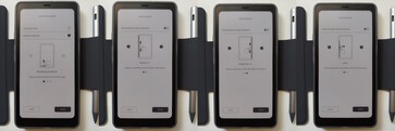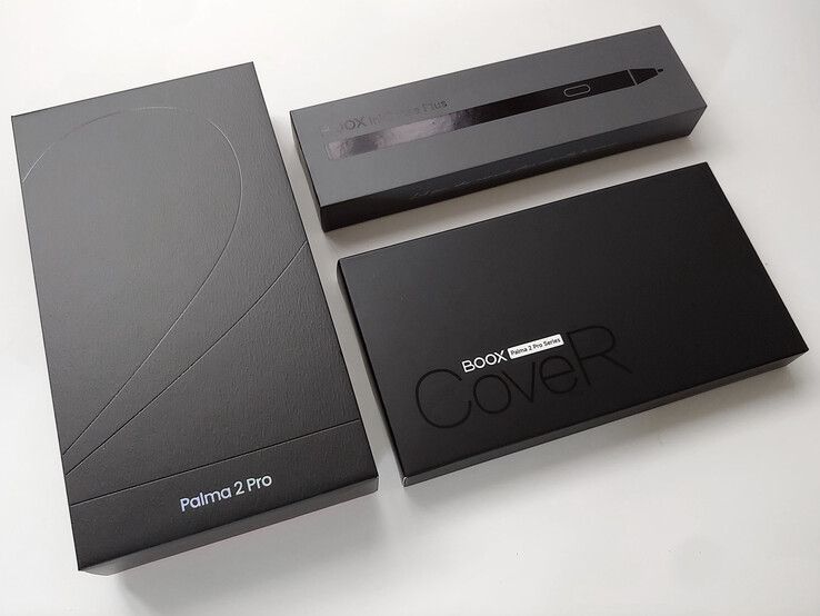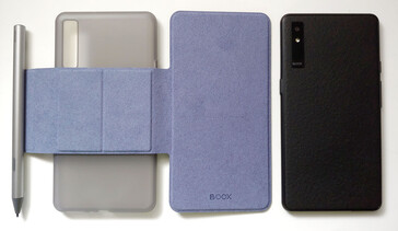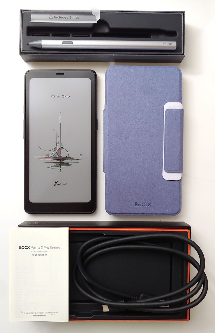 La liseuse est livrée avec un câble USB-C, un guide de démarrage rapide et un outil d'éjection de la carte SIM, ainsi qu'un étui magnétique en option et un stylet avec trois pointes de remplacement.