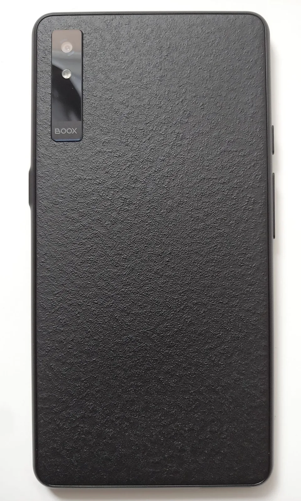 Le Boox ressemble à un smartphone, avec un écran tactile mat E Ink Kaleido 3 pour une lecture sans reflet, deux microphones et des haut-parleurs stéréo. Les commandes physiques comprennent un bouton d'alimentation sur le bord droit, et des boutons intelligents et de volume sur le bord gauche. Un appareil photo de 16 mégapixels avec flash se trouve à l'arrière.