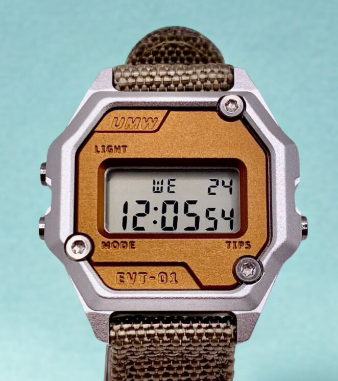 R : La EVT-01, notre première montre numérique, est le résultat d'un processus artisanal, très éloigné de la production de masse. Elle est équipée d'un mouvement qui ne coûte que 20 euros, mais pas n'importe lequel : la Casio F91W, la montre numérique la plus emblématique au monde. Pour nous, c'est le produit dans son ensemble qui donne à l'EVT-01 sa véritable valeur. Ce qui nous différencie des autres marques, c'est la touche artisanale que nous apportons à chaque montre qui sort de notre atelier.