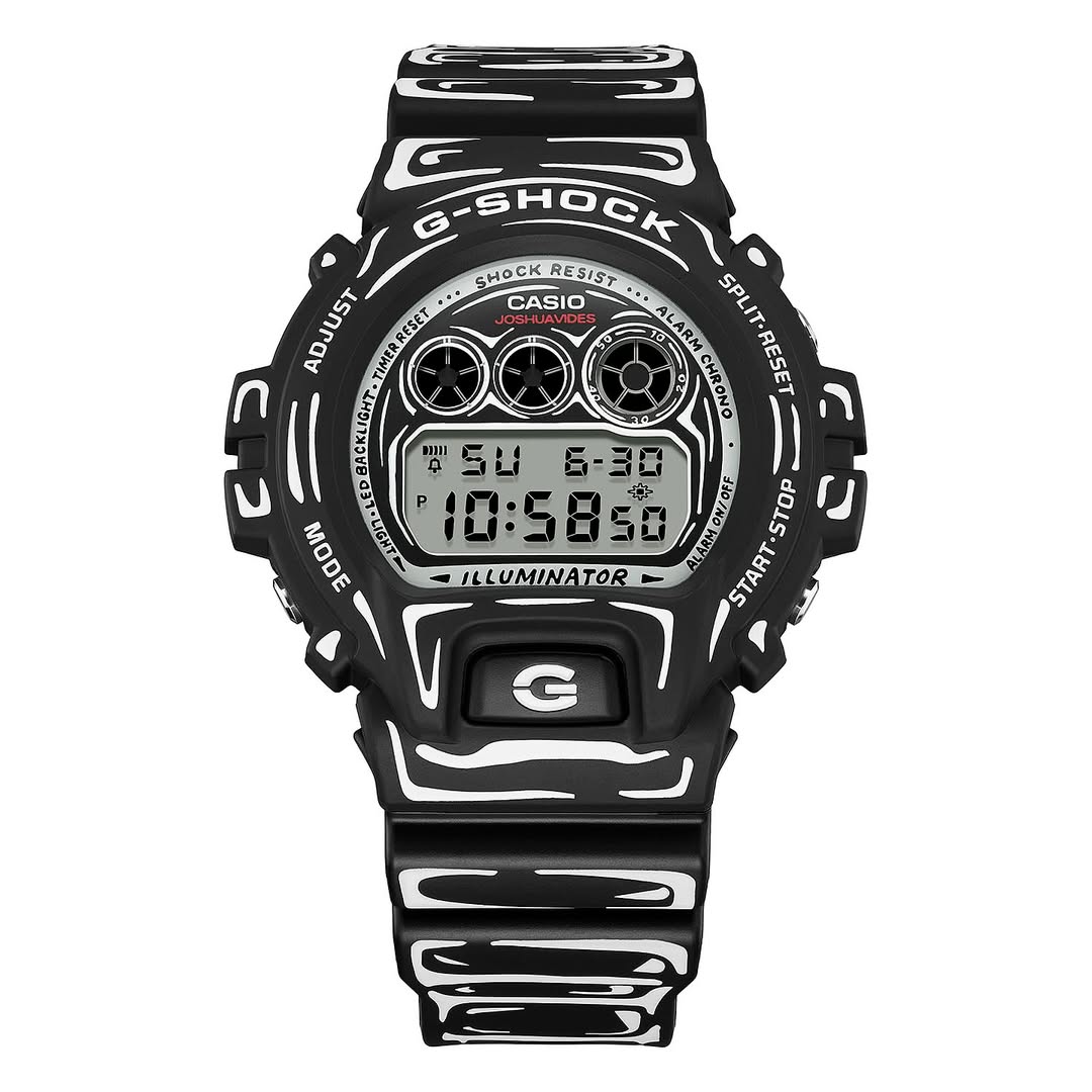 De nouvelles photos du produit révèlent également que les montres seront expédiées dans un emballage de collaboration personnalisé, avec des graphiques d'éclaboussures et un co-branding de G-Shock et Joshua Vides. Le design de la boîte correspond au style artistique monochrome utilisé sur les montres elles-mêmes.
