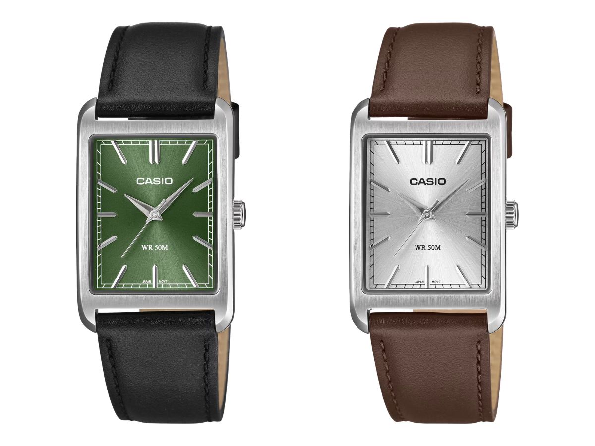 Casio a dévoilé six nouvelles montres MTP-B215qui seront commercialisées dans le monde entier. Ce modèle analogique présente un design simple, avec un cadran rectangulaire doté de trois aiguilles et d'index bâtons.