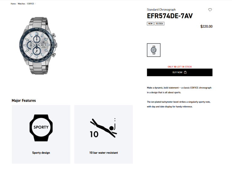 D'après la liste de produits, l'EFR574DE-7AV est désormais disponible sur le site de la boutique Casio aux États-Unisavec un stock limité au moment de la rédaction de cet article.