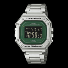 La W-218HD-3AV est le seul modèle de la série équipé d'un bracelet en acier inoxydable et d'un fermoir triple. Elle utilise un design industriel carré classique avec des dimensions compactes par rapport au design surdimensionné des deux autres modèles. Il est très facile de remarquer les compromis techniques : l'étanchéité est réduite à 50 mètres et l'autonomie de la batterie de 7 ans, bien qu'excellente, se situe à mi-chemin entre les modèles analogiques et hybrides. L'utilisation d'un bracelet métallique augmente le poids à 85 g, ce qui en fait le modèle le plus lourd de la gamme malgré le plus petit encombrement du boîtier.