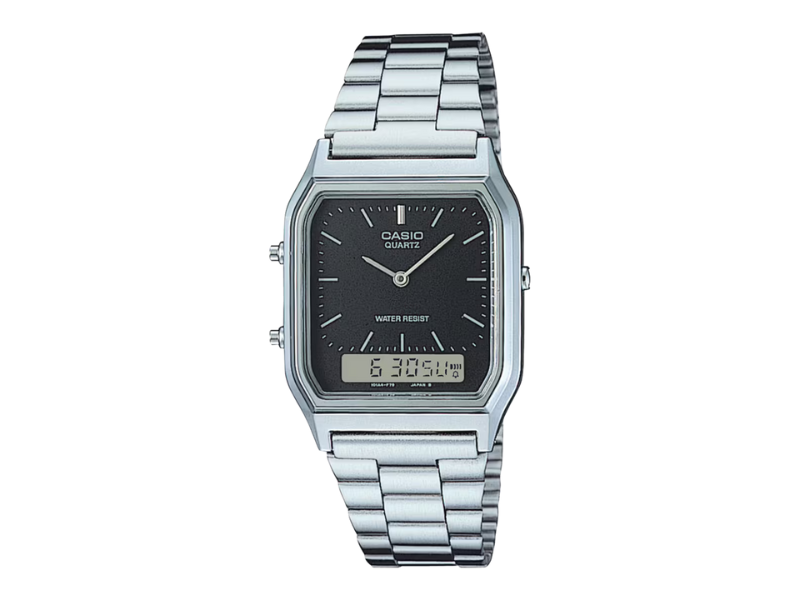 Casio a lancé la montre Vintage AQ230A-1DM aux Etats-Unis. Cette montre hybride est la quatrième de la gamme actuelle de montres AQ230A de la marque sur ce marché. Elle présente un design noir et argenté similaire à celui de l'ancienne AQ230A-1DS(44,95 $ actuellement sur Amazon Marketplace).