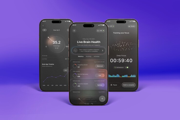 Cela permet à l'application smartphone associée d'afficher, entre autres, l'intensité de la fatigue cérébrale de l'utilisateur, la fraîcheur du cerveau le matin et le moment propice pour effectuer des tâches plus légères ou un travail mental intensif. "Brain Age" est conçu pour montrer comment les activités et les habitudes affectent le vieillissement cognitif. L'EEG à 12 canaux est censé aider les utilisateurs à obtenir en moyenne 33 % de temps de concentration en plus