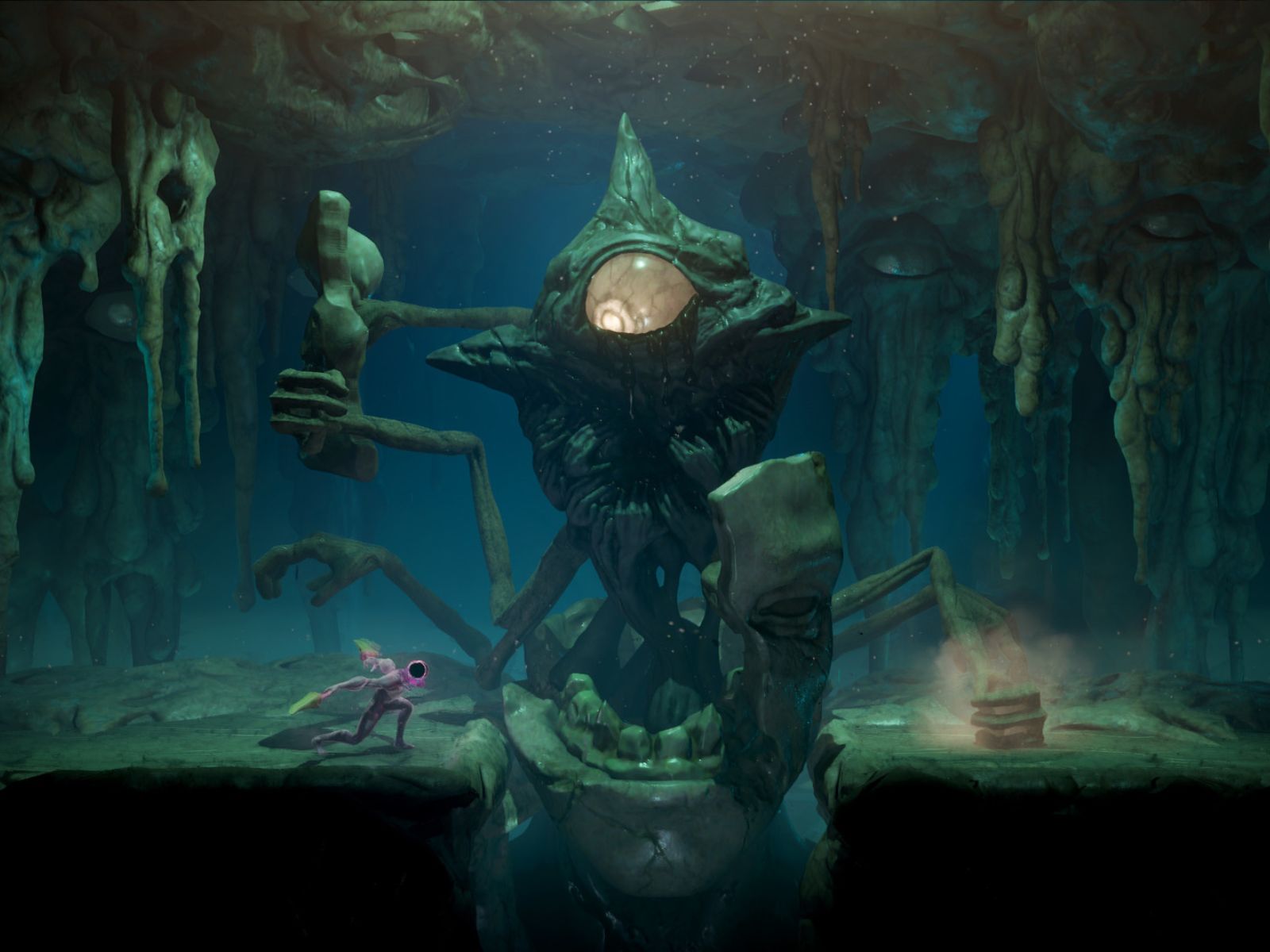 Personne ne sait qui vous êtes, pas même vous, et vous incarnez une créature avec un trou noir à la place du visage. Dans ce monde étrange en 3D, vous devez traverser des grottes et d'autres environnements pour découvrir les secrets qui vous permettront de révéler votre véritable identité. Mais sur votre chemin, vous rencontrerez de nombreuses créatures terrifiantes. Elles ont des capacités différentes, ainsi que des faiblesses que vous devrez exploiter. Et vous vous battrez avec des armes vivantes.