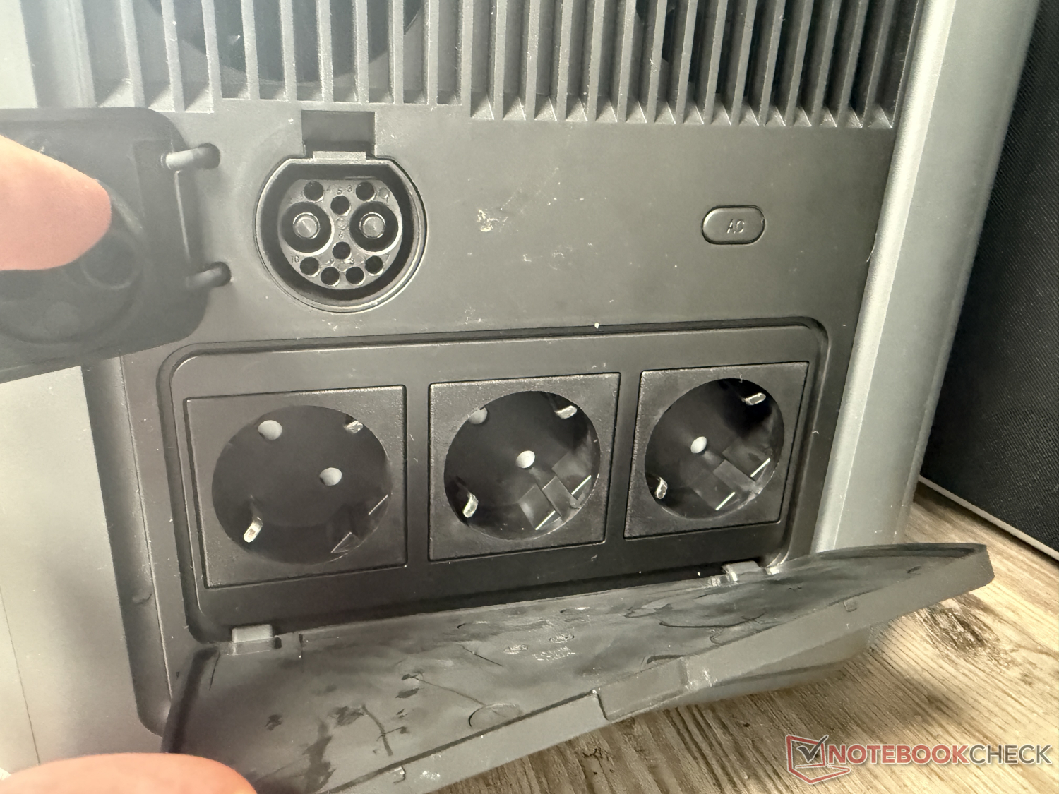 Si le thème de l'application est un désastre, le matériel lui-même fait bonne impression. La finition est correcte. Il est pratique que les connexions CA, par exemple, soient situées sur le côté, derrière un rabat en caoutchouc. Cela les protège contre les projections d'eau, même si le rabat lui-même rend l'accès aux prises un peu plus difficile.