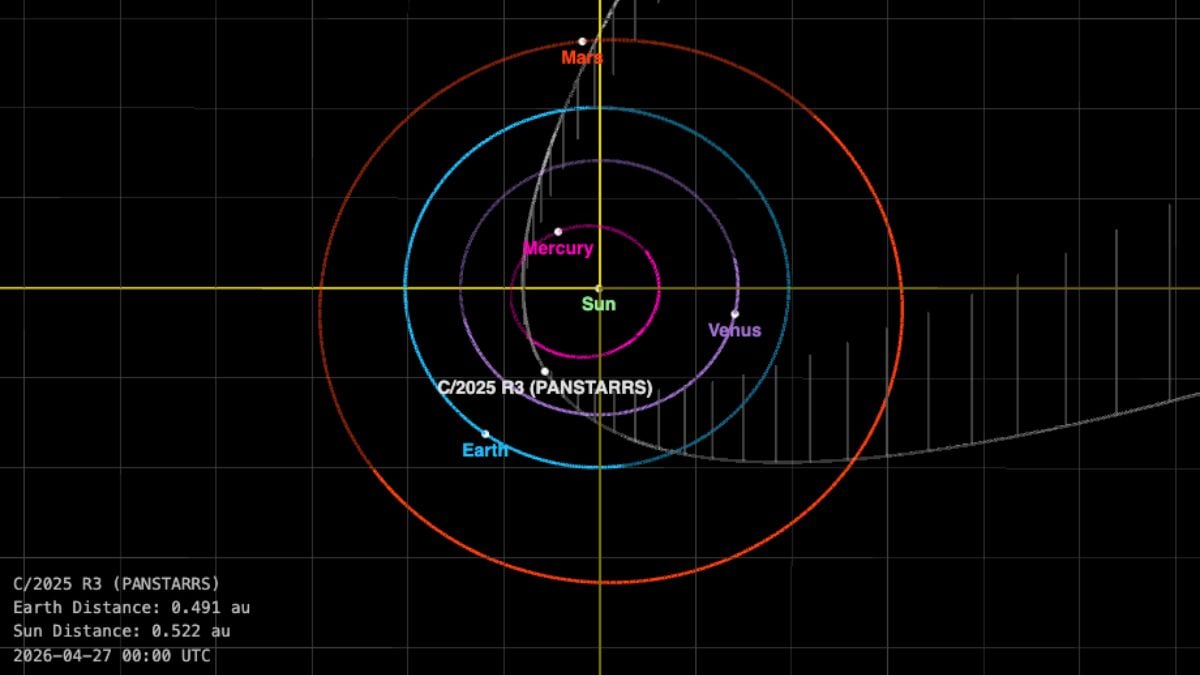 Selon les astronomesil s'agit d'une comète à longue période qui met plus de 1 000 ans à tourner autour du Soleil. Et ce n'est pas tout, puisqu'elle sera au plus près de notre étoile le 20 avril, à une distance d'environ 76,3 millions de kilomètres. Elle passera ensuite à environ 70,8 millions de kilomètres de la Terre le 27 avril 2026. Cependant, elle pourrait être cachée par le Soleil, et il faudra donc regarder vers le ciel le 17 avril pour la voir.
