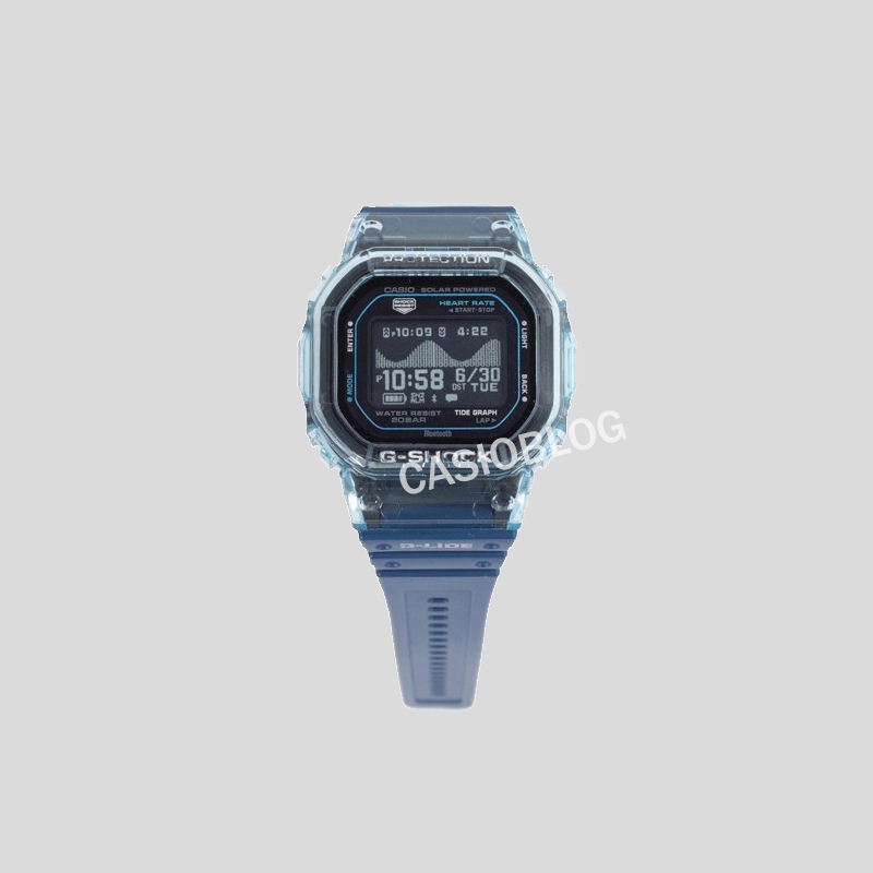 Les images divulguées montrent deux variantes : la GBX-H5600-1 noire et la GBX-H5600-2 bleue, toutes deux dotées d'un cadran et d'un boîtier translucides. Nous pouvons également voir le logo G-LIDE imprimé sur le bracelet, ce qui suggère des ambitions claires en matière de sports nautiques.