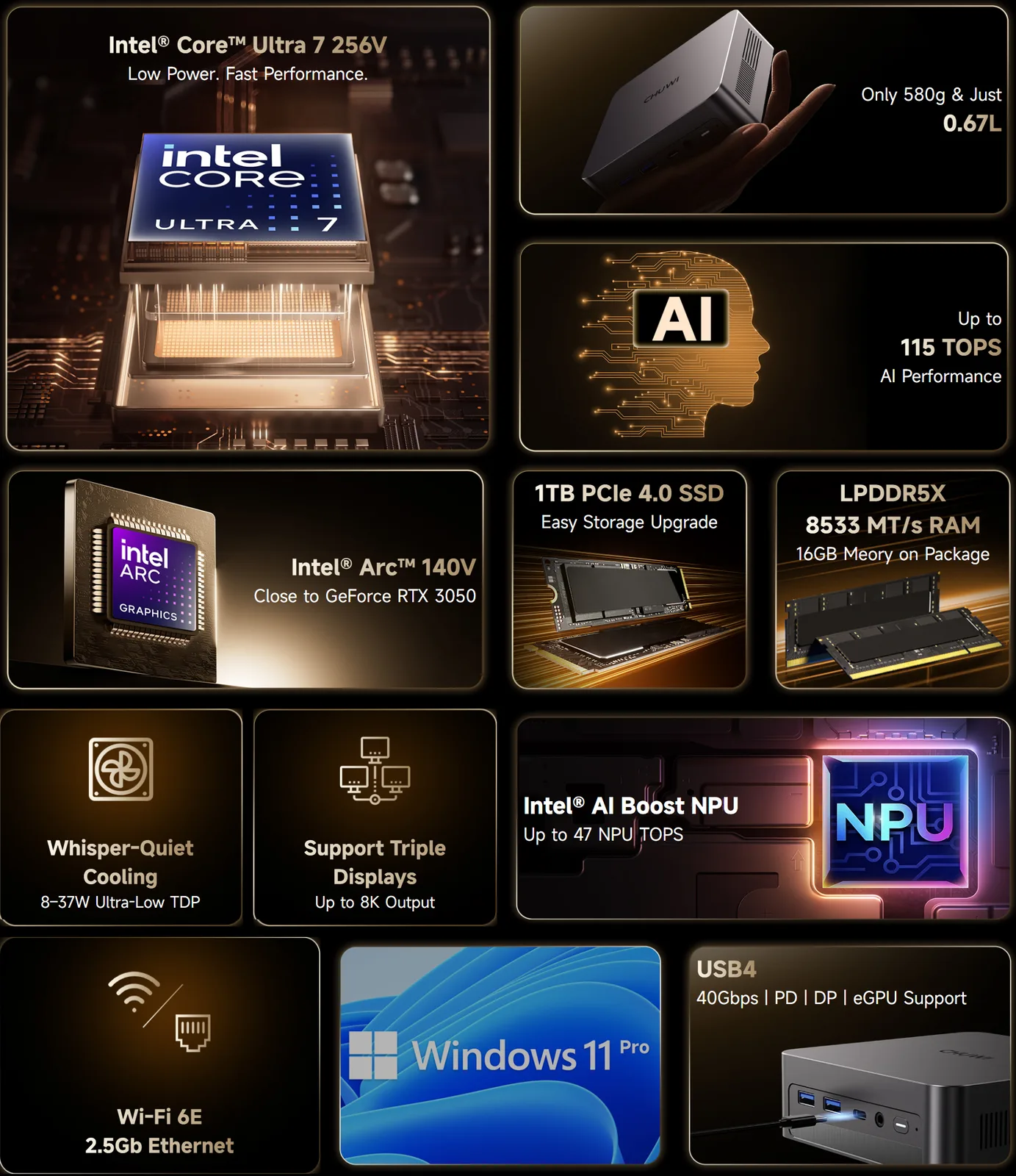 En ce qui concerne le prix, l'option Intel Core Ultra 7 256V de la Chuwi AuBox X a un prix de lancement de 759 $. Ce prix s'entend avec les remises pour lève-tôt en place, et après le 20 mai 2026, le coupon de réduction de 70 $ expirera.